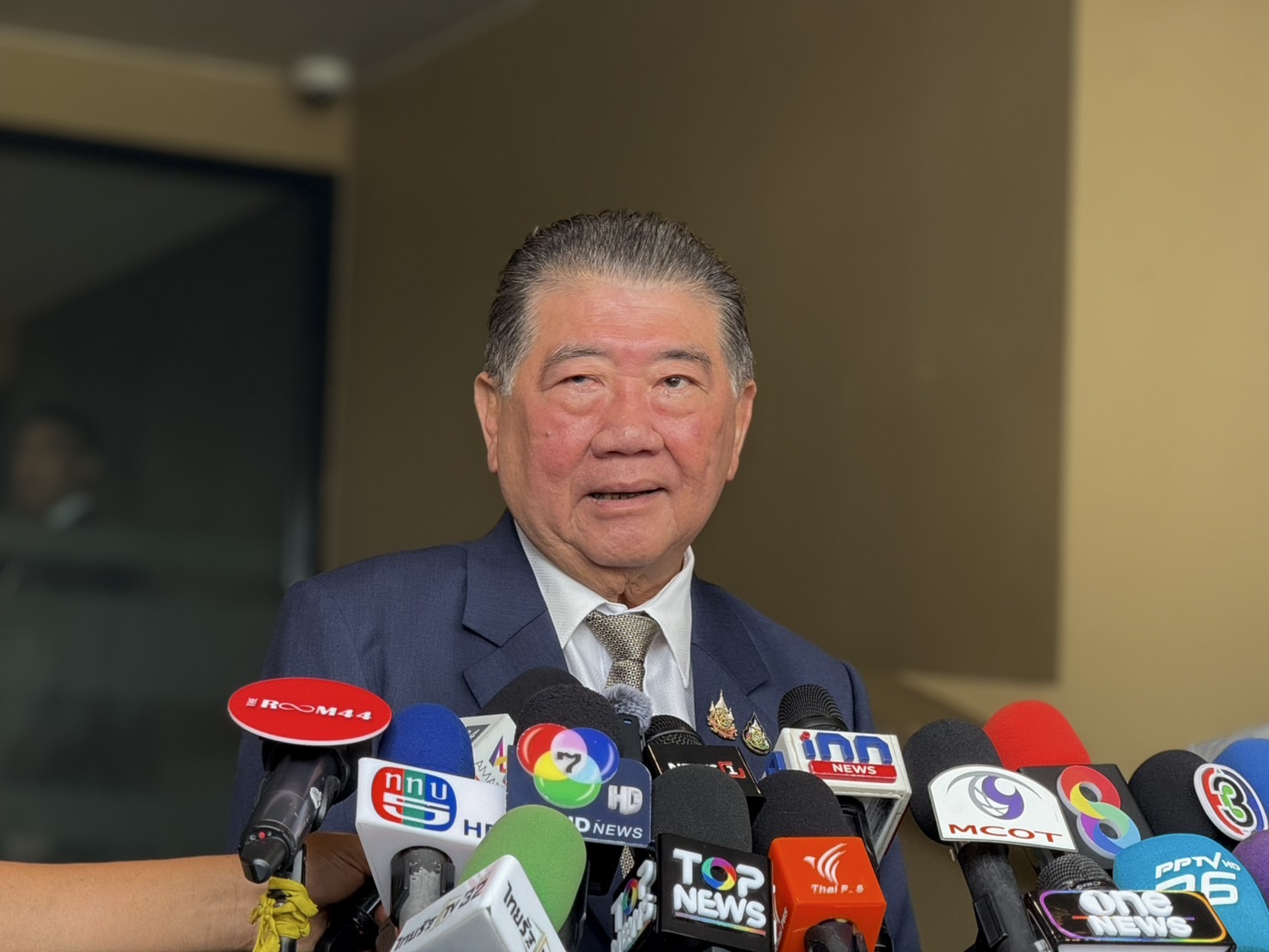 นายภูมิธรรม เวชยชัย รองนายกรัฐมนตรี และรัฐมนตรีว่าการกระทรวงมหาดไทย รักษาราชการแทนนายกรัฐมนตรี กล่าวถึงกรณีที่นางสาวแพทองธาร ชินวัตร นายกรัฐมนตรี และรัฐมนตรีว่าการกระทรวงวัฒนธรรม เข้าชี้แจง ศาลรัฐธรรมนูญ กรณีคลิปเสียงสนทนากับสมเด็จฮุนเซน ประธานวุฒิสภากัมพูชา วานนี้ (21 ส.ค.) ว่า ยังไม่ได้คุยกับนางสาวแพทองธาร เนื่องจากเมื่อคืนที่ผ่านมาเสร็จภารกิจดึก เช้านี้ตื่นสาย เนื่องจากมีภารกิจเช้ามาทั้งสัปดาห์