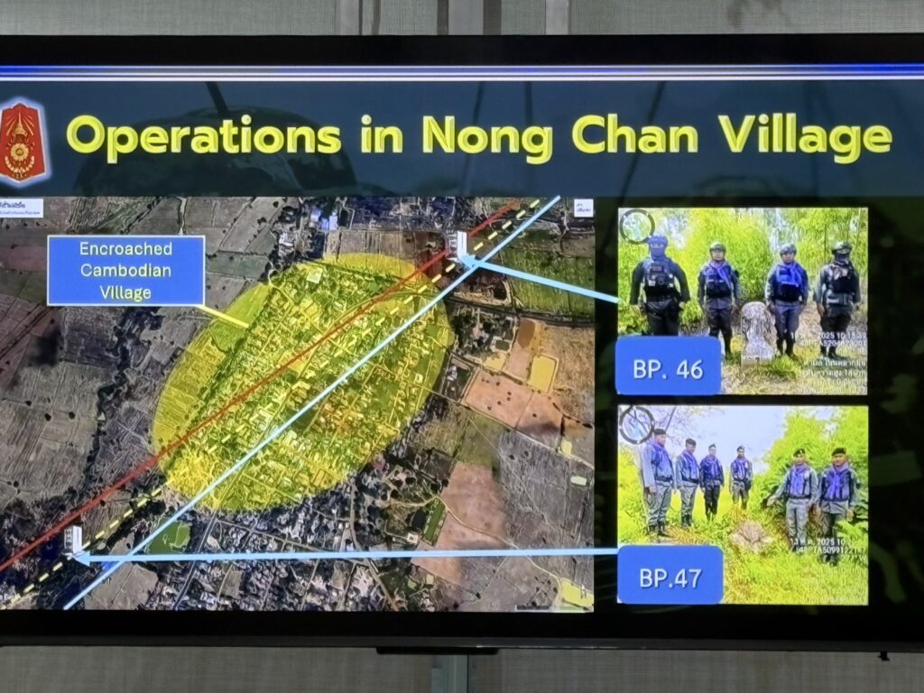 แม่ทัพภาคที่ 1 ยังกล่าวถึงการปฏิบัติต่อพื้นที่บ้านหนองจาน ที่กำลังเป็นข่าวในขณะนี้ ว่า ได้พยายามผลักดันถอนทหารกัมพูชาออกไป โดยไม่มีการปะทะ หลังจากนั้นจึงมีการวางแนวลวดหนามเพื่อควบคุมพื้นที่ไม่ให้ฝ่ายตรงข้ามกลับเข้ามา ยืนยันว่าการวางแนวลวดหนามเป็นหลักการรบป้องกันตนเอง มิใช่หลักเขตแดนตามที่เป็นข่าว และบ้านหนองจาน ระหว่างหลักเขตที่ 46 และ 47 ไม่มีหมุดหลักเขต เป็นพื้นที่ราบ จึงวางลวดหนามเพื่อป้องกันตนเอง