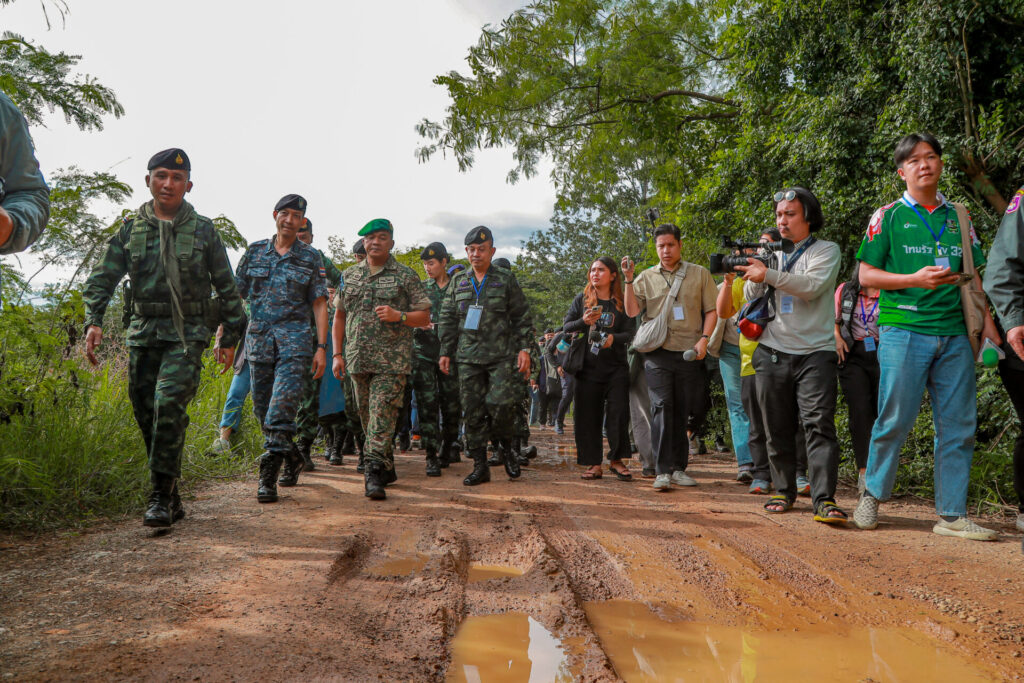 เมื่อเวลา 16.00 น. ที่ ต.หนองจาน อ.โคกสูง จ.สระแก้ว กองทัพไทยนำคณะผู้สังเกตการณ์ชั่วคราว (IOT) 8 ประเทศ ลงพื้นที่ชายแดนไทย–กัมพูชา ตรวจสอบข้อเท็จจริงถึงการรุกล้ำอธิปไตยแผ่นดินไทยของกัมพูชา และรายงานถึงหลักเขตที่ 46 – 48 ที่อยู่ด้านในพื้นที่ พร้อมรับทราบมาตรการควบคุมและป้องกันการกระทำผิดกฎหมายข้ามชาติ เช่น อาชญากรรมออนไลน์ และการลักลอบเข้าเมืองอย่างผิดกฎหมาย