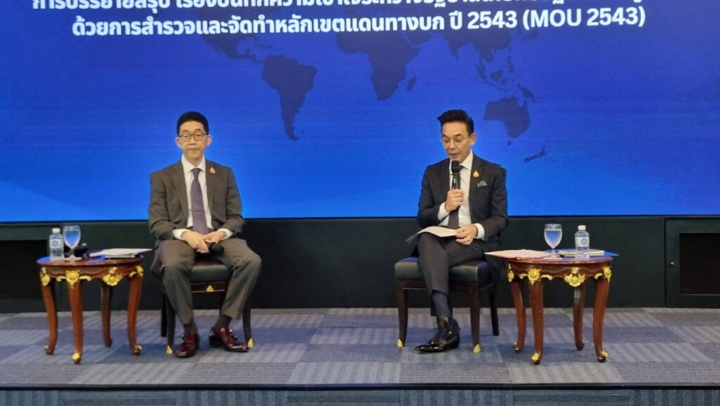 นายเบญจมินทร์ สุกาญจนัจที อธิบดีกรมสนธิสัญญาและกฎหมาย กระทรวงการต่างประเทศ ร่วมกับนายนิกรเดช พลางกูร อธิบดีกรมสารนิเทศและโฆษกกระทรวงการต่างประเทศ อธิบายถึงที่มาของบันทึกความเข้าใจว่าด้วยการสำรวจและจัดทำหลักเขตแดนทางบกระหว่างไทยกับกัมพูชา หรือ MOU 43 ว่าเป็นเอกสารพื้นฐานของกรอบการเจรจา ระหว่างรัฐบาลไทยกับรัฐบาลกัมพูชา ว่าด้วยการสำรวจและจัดทำหลักเขตแดนทางบกปี 2543 หรือ MOU2543 หรือ MOU43