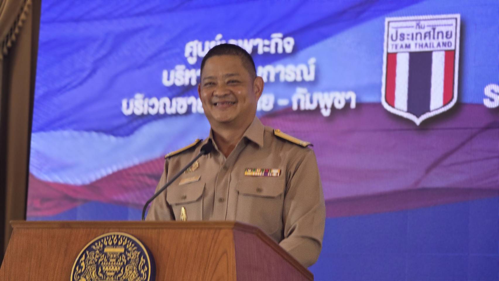 พลเรือตรีสุรสันต์ คงสิริ โฆษกกระทรวงกลาโหม นายนิกรเดช พลางกูร อธิบดีกรมสารนิเทศและโฆษกกระทรวงการต่างประเทศ และ น.อ.กฤษณัส กาญจนกุล ผู้ช่วยเลขานุการ คณะทำงานบูรณาการระบบอากาศยานไร้คนขับ และระบบต่อต้านอากาศยานไร้คนขับกองทัพอากาศ แถลงผลการประชุมศูนย์เฉพาะกิจบริหารสถานการณ์บริเวณชายแดนไทย-กัมพูชา หรือ ศบ.ทก.