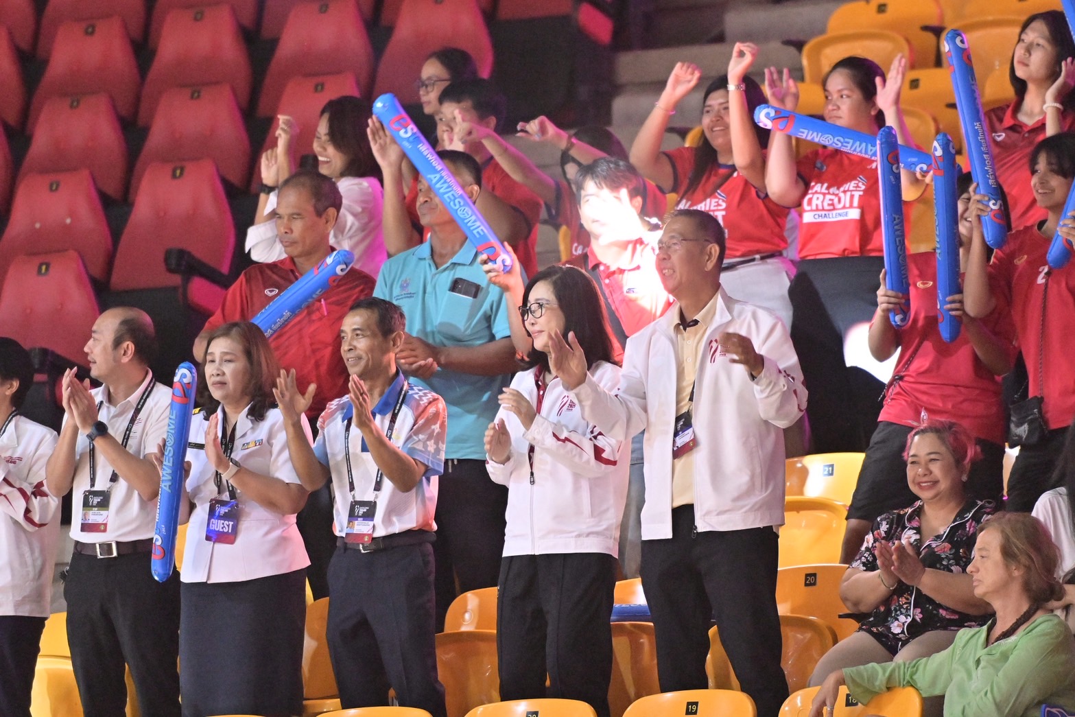 จากนั้น ปลัดกระทรวงท่องเที่ยว และผู้ว่าฯจังหวัดนครราชสีมาได้ร่วมชมการแข่งขันวอลเลย์บอลระหว่างทีมชาติแคนนาดา-สเปน บรรยากาศเป็นไปอย่างคึกคัก ผู้เข้าร่วมชมการแข่งขันทั้งชาวไทยและชาวต่างชาติต่างส่งเสียงเชียร์ทีมที่ตัวเองรัก โดยช่วงพักครึ่งมีการเปิดเพลง “To Be The Champion เสียงเชียร์ เพื่อแชมป์” ซึ่งเป็นเพลงประจำการแข่งขันครั้งนี้ ปลัดกระทรวงท่องเที่ยว และผู้ว่าราชการจ.นครราขสีมา จึงได้ชวนทีมงาน และกองเชียร์ทั้งชาวไทยและชาวต่างชาติลุกขึ้นเต้นสนุกไปกับการเชียร์เพื่อร่วมกิจกรรมของสหพันธ์วอลเลย์บอลนานาชาติ (FIVB) ด้วย