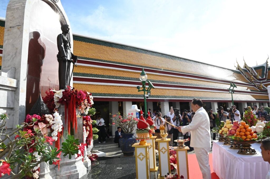 รัฐบาลจึงขอเชิญชวนประชาชนมีส่วนร่วมในกิจกรรมเฉลิมพระเกียรติฯ สำหรับวันที่ 20-27 กันยายน 2568 ซึ่งจะมีพิธีและกิจกรรรมเกิดขึ้นอย่างต่อเนื่อง จึงขอเชิญชวนประชาชนทุกภาคส่วนร่วมน้อมรำลึกในพระมหากรุณาธิคุณ แสดงออกถึงความจงรักภักดี รวมถึงรับชมนิทรรศการและร่วมกิจกรรมที่หน่วยงานต่าง ๆ ร่วมกันจัดขึ้น ณ วัดสุทัศนเทพวราราม -สำนักข่าวไทย