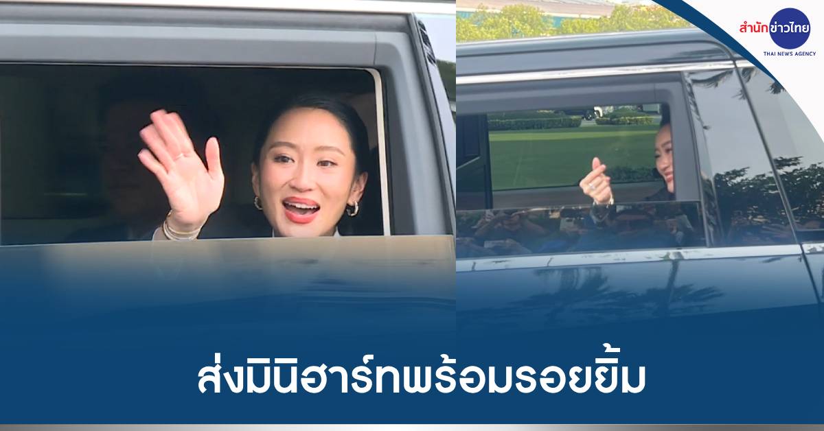 ทำเนียบ 29 ส.ค.-“แพทองธาร” ส่งมินิฮาร์ทพร้อมรอยยิ้ม โบกมือลาสื่อ ก่อนออกจากเนียบฯ