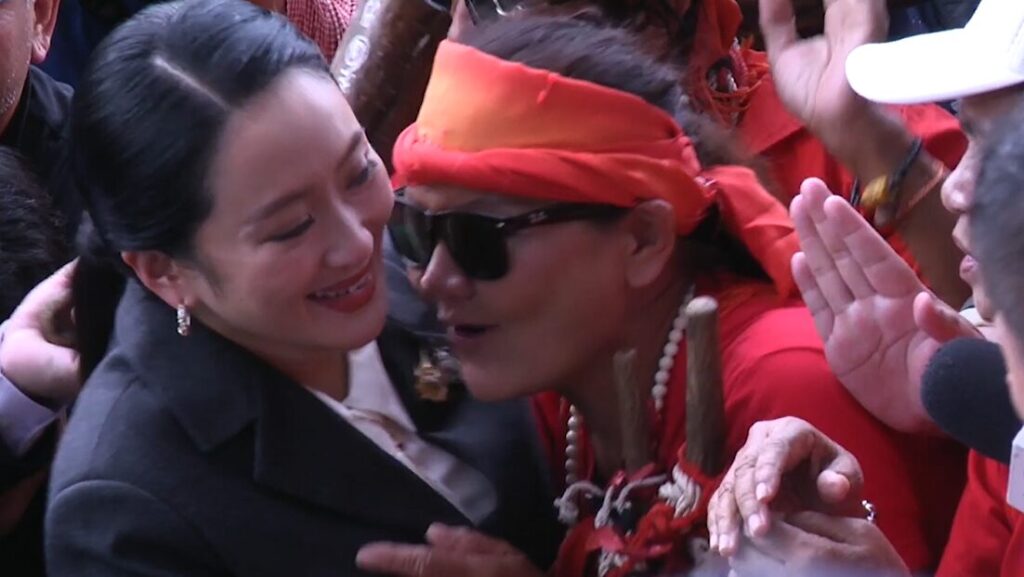 หลังจากนายทักษิณมาถึงที่ทำการพรรคเพื่อไทย ไม่เกิน 3 นาที น.ส.แพทองธาร ชินวัตร บุตรสาว ก็ได้เดินทางเข้ามาที่ทำการพรรคเพื่อไทยโดยลงรถยนต์หน้าที่ทำการพรรค ซึ่งมีมวลชนมาให้กำลังใจ น.ส.แพรทองธารใช้เวลาตรงจุดนี้อยู่นานพอสมควรในการทักทายกับมวลชน บางจังหวะ มีก้มลงไปรับไหว้มวลชนที่นั่งบนบันได และพูดคุยกันอยู่นานพอสมควร