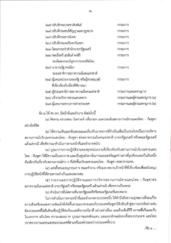 - ติดตาม ตรวจสอบ วิเคราะห์ และประเมินสถานการณ์ชายแดนไทย–กัมพูชาอย่างใกล้ชิด