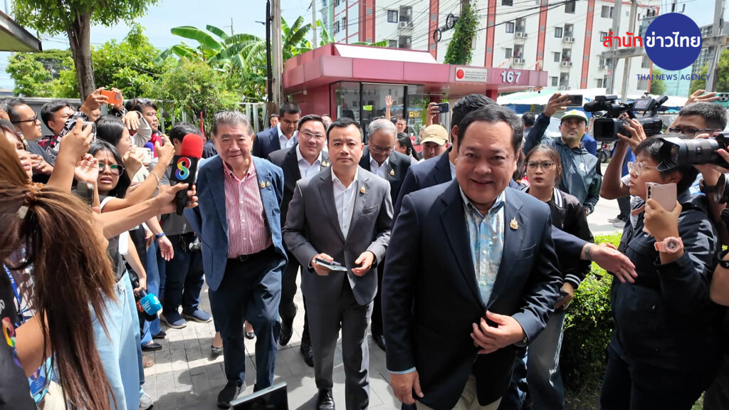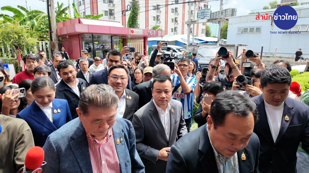 พรรคประชาชน 31 ส.ค.- “ภูมิธรรม-ทวี-เดชอิศม์” พร้อมแกนนำเพื่อไทย ถึง ปชน. เจอมวลชนส้มตะโกนไล่ “พรรคเพื่อเขมร เก็ทเอาท์” ขณะที่ “ช่อ” ยืนมองยิ้มจากบนตึก ด้าน “ธนาธร-ชัยธวัช” โผล่ร้านกาแฟใกล้พรรค