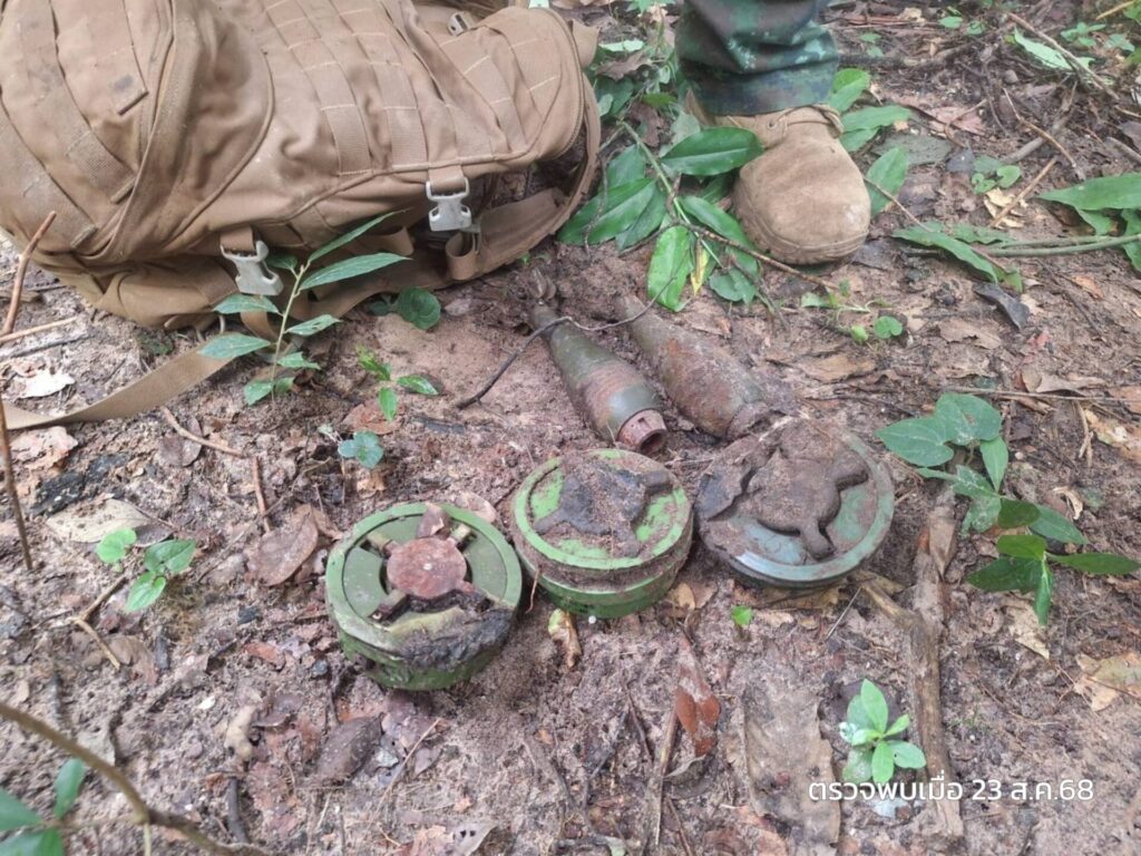 ทั้งนี้ ยุทธวิธีของทหารกัมพูชาสอดคล้องกับเหตุการณ์เมื่อวันที่ 22 ส.ค.68 ที่ฝ่ายไทยตรวจพบทหารกัมพูชา ดักซุ่มและตรวจการณ์ฝ่ายไทย บริเวณทิศตะวันตกของเนิน 350 ต.บักได อ.พนมดงรัก จ.สุรินทร์ ซึ่งต่อมา จากการเข้าตรวจสอบพื้นที่โดยรอบ พบการวางทุ่นระเบิด PMN-2 รวม 3 ทุ่น พร้อมลูกกระสุนเครื่องยิงลูกระเบิด 2 ลูก และตะปูเรือใบจำนวนมาก คาดว่าลูกกระสุนเครื่องยิงลูกระเบิดดังกล่าวจะถูกเตรียมนำมาใช้ในการวางกับระเบิดแสวงเครื่อง ตามที่ปรากฏ