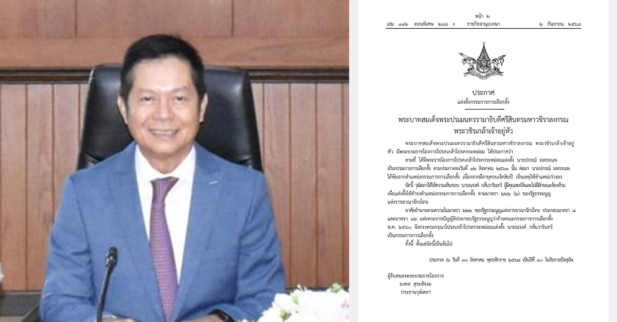 2 ก.ย.- โปรดเกล้าฯ แต่งตั้ง “ณรงค์ กลั่นวารินทร์” เป็น กกต. แทน “ปกรณ์ มหรรณพ” ที่พ้นจากตำแหน่ง