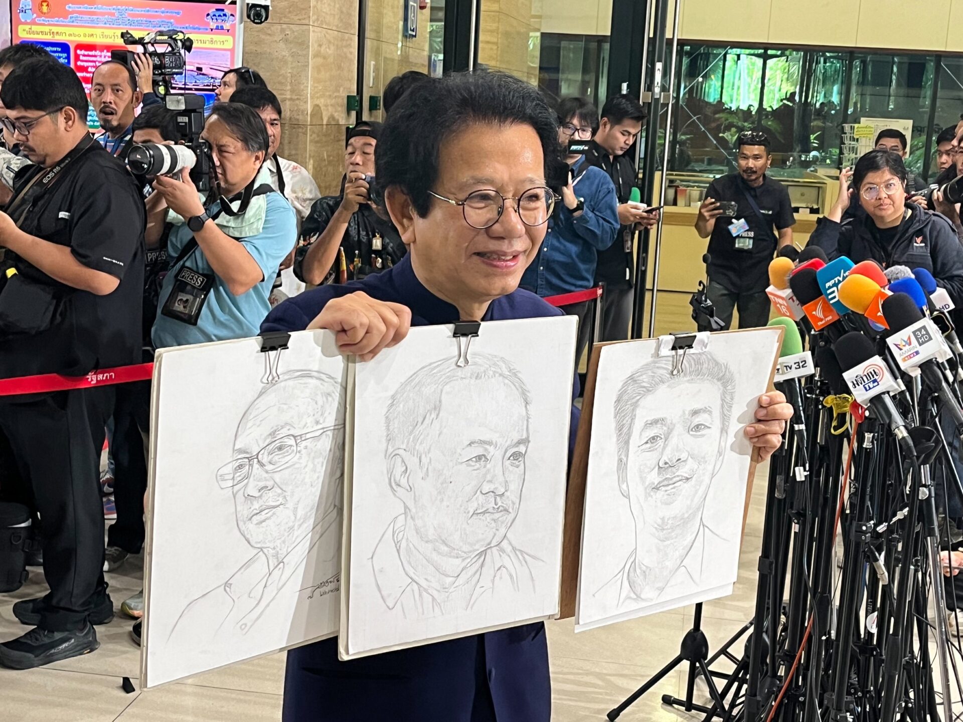 รัฐสภา 5 ก.ย.-“หมอทศพร” นำภาพสเก็ตช์ “แคนดิเดตนายกฯ-เท้ง” โชว์สื่อ ก่อนรอลุ้นเจ้าบ่าวเลือกใคร หาก “อนุทิน” นั่งนายกฯ จะนับถอยหลังทุกวัน คืนอำนาจประชาชน