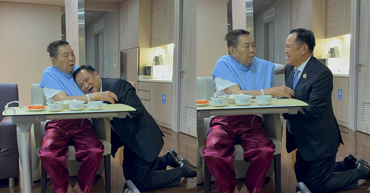 ทันทีที่ถึงโรงพยาบาล นายอนุทินได้ก้มกราบที่ตักพ่อ พร้อมสวมกอดระหว่างที่พ่อกำลังรับประทานอาหารเย็น ทั้งคู่มีสีหน้ายิ้มแย้ม สดใส