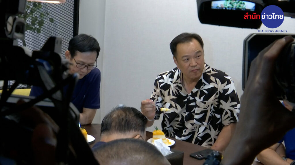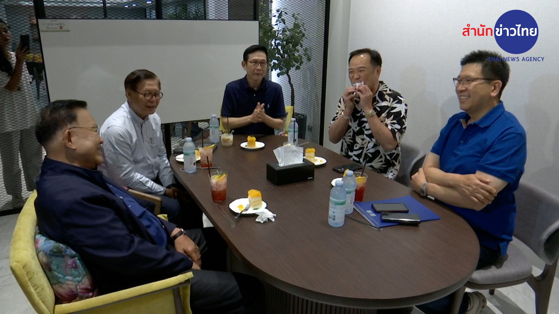 ผู้สื่อข่าวรายงานว่า ว่าชื่อรัฐมนตรีป้ายแดงทั้ง 4 คนได้นั่งพูดคุยกับนายอนุทิน ด้วยบรรยากาศเป็นกันเอง และมีการเสิร์ฟเมนูเค้กส้ม -สำนักข่าวไทย