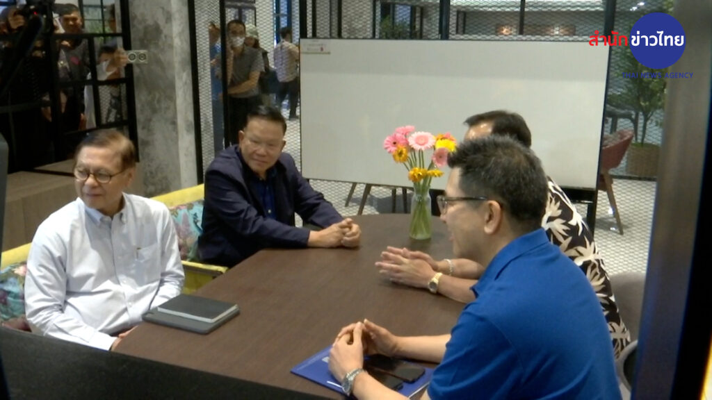 นายอนุทิน ชาญวีรกูล ว่าที่นายกรัฐมนตรี พร้อมด้วยนายสีหศักดิ์ พวงเกตุแก้ว อดีต ปลัดกระทรวงการต่างประเทศ อดีตเอกอัครราชทูตไทยประจำกรุงลอนดอน และอดีตที่ปรึกษารัฐมนตรีว่าการกระทรวงการต่างประเทศ รวมถึงนายเอกนิติ นิติทัณฑ์ประภาศ อธิบดีกรมธนารักษ์ กระทรวงการคลัง และนายสันติ พร้อมพัฒน์ รองหัวหน้าพรรคพลังประชารัฐ ดื่มกาแฟร่วมกันที่ร้านจานิสตาร์ ชั้น 1 ที่ทำการพรรคภูมิใจไทย ภายหลังหารือร่วมกันที่บริเวณชั้นบน