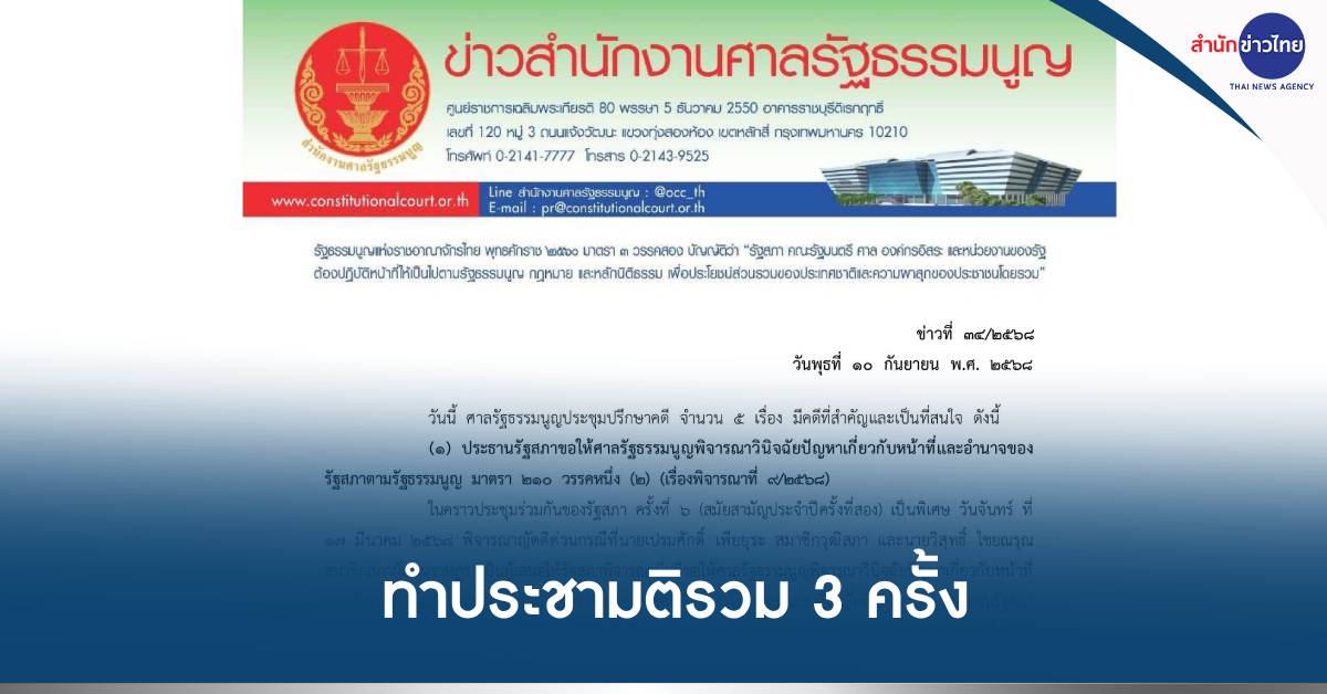 ศาล รธน. 10 ก.ย.-ศาลรัฐธรรมนูญ มติเสียงข้างมาก ชี้รัฐสภามีอำนาจริเริ่มแก้ไข รธน.ฉบับใหม่ได้ แต่ต้องถามประชาชนก่อน โดยต้องทำประชามติรวม 3 ครั้ง แต่ครั้งที่ 1-2 ทำรวมกันได้
