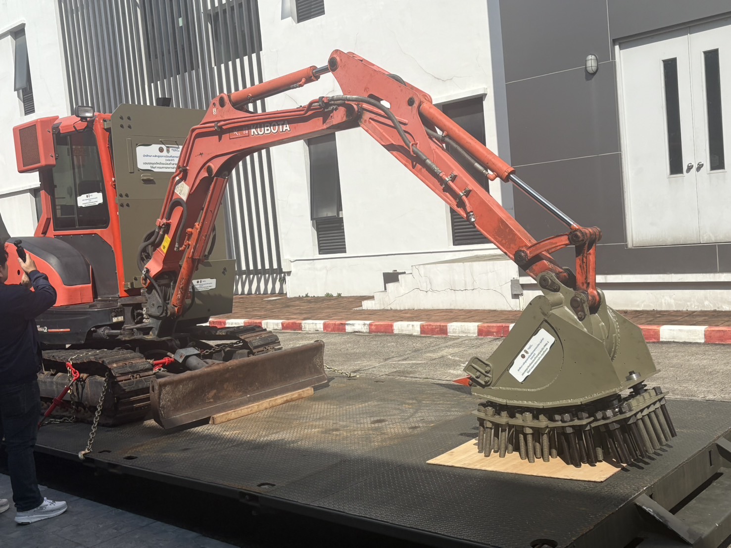 ขณะที่ ศาสตราจารย์ ดร.ชูกิจ ลิมปิจานงค์ ผู้อำนวยการ สวทช. ในฐานะนักศึกษา วปอ.67 ระบุว่า รถต้นแบบถูกพัฒนาดัดแปลงขึ้น จาก จากรถขุดดินขนาดเล็กประมาณ 3.5 ตันซึ่งง่ายต่อการขับขี่และใช้งานของกำลังพล ซึ่งในส่วนของหัวขุดได้ดัดแปลงติดเหล็กที่มีลักษณะคล้ายน็อตเพื่อเป็นหัวกดทำลายจนระเบิดและรับแรงดัน