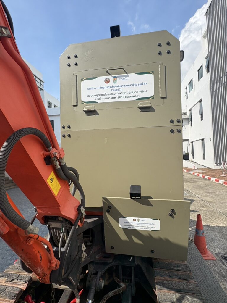 คณะนักศึกษา วิทยาลัยป้องกันราชอาณาจักร รุ่นที่ 67 หรือ วปอ.67 ได้ทำพิธีส่งมอบ รถขุดตักดัดแปลงทำลายทุ่นระเบิด PMN-2 สำหรับภูมิประเทศซับซ้อนสูงในพื้นที่ชายแดน ให้แก่ พลโทสิรภพ ศุภวานิช เจ้ากรมการทหารช่าง กองทัพบก เพื่อนำไปใช้ในภารกิจป้องกันประเทศ