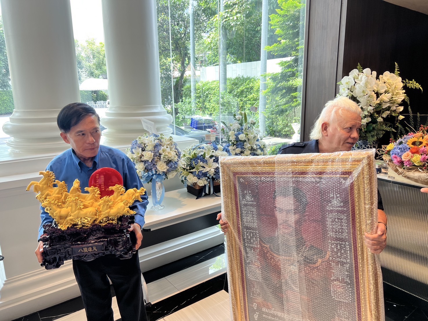 ขณะที่เนื่องในวันคล้ายวันเกิดครบรอบ 59 ปี นายอนุทิน ชาญวีรกูล นายกรัฐมนตรีและหัวหน้าพรรคภูมิใจไทย นายประสาน หวังรัตนปราณี อดีตที่ปรึกษารองนายกรัฐมนตรีและรัฐมนตรีว่าการกระทรวงมหาดไทย (อนุทิน ชาญวีรกูล) นำรูปปั้นม้าพลังศึก 8 ตัว ซึ่งหมายถึงความสำเร็จ ความเจริญก้าวหน้า และโชคลาภ และพระบรมสาทิสลักษณ์สมเด็จพระเจ้าตากสิน จากวัดโพธิ์เผือก ทุ่งมะขามหย่อง จังหวัดพระนครศรีอยุธยา โดยด้านหลังมีข้อความระบุว่า “มหาอำนาจ แคล้วคลาด ปลอดภัย ความสุข ความเจริญ จงมีแก่ท่าน” มามอบให้นายอนุทิน.-315-สำนักข่าวไทย