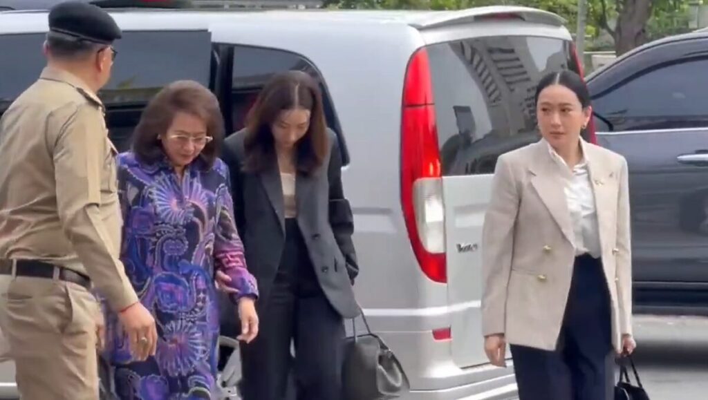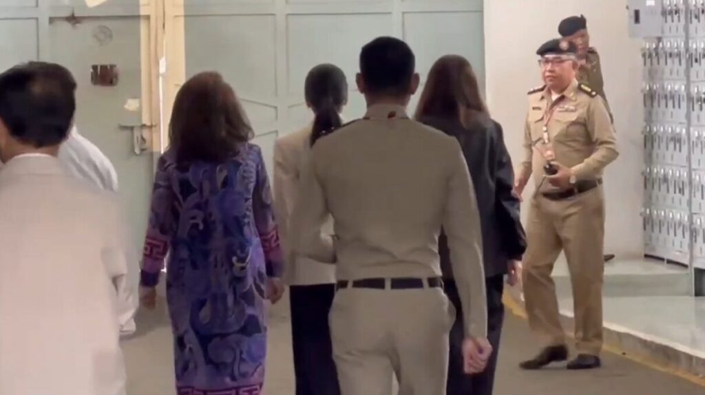 ล่าสุด ครอบครัวชินวัตรเดินทางมาถึงเรือนจำคลองเปรมแล้ว นำโดยคุณหญิงพจมาน ดามาพงศ์, น.ส.พินทองทา ชินวัตร คุณากรวงศ์ ลูกสาวคนโต และ น.ส.แพทองธาร ชินวัตร อดีตนายกรัฐมนตรี.-สำนักข่าวไทย