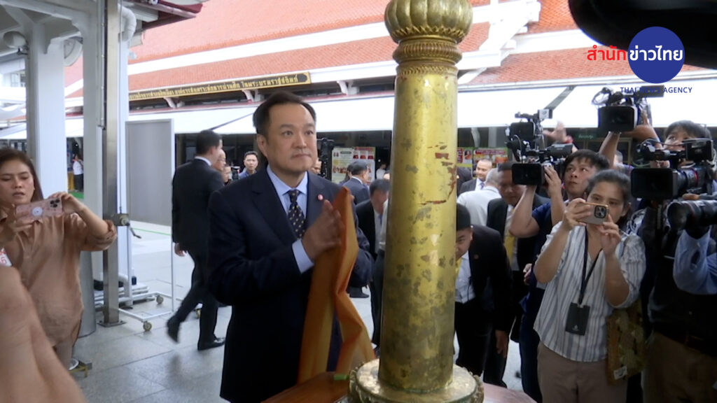 ขณะที่ประชาชนที่มาสักการะสิ่งศักดิ์สิทธิ์ที่ศาลหลักเมือง ต่างตะโกนให้กำลังใจนายอนุทิน “นายกฯ สู้ๆ” ก่อนที่นายอนุทินจะหันไปยกมือไหว้ขอบคุณ