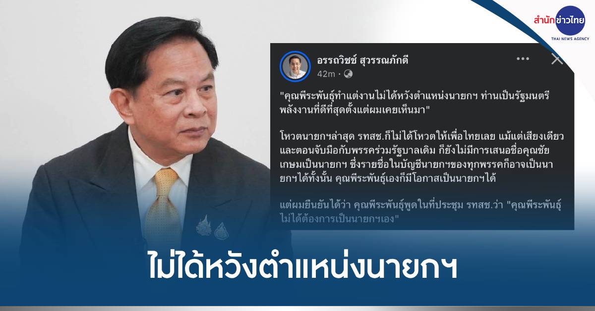 “แต่ผมยืนยันได้ว่า คุณพีระพันธุ์ พูดในที่ประชุม รทสช.ว่า คุณพีระพันธุ์ ไม่ได้ต้องการเป็นนายกฯ เอง” นายอรรถวิชช์ ระบุ.-สำนักข่าวไทย