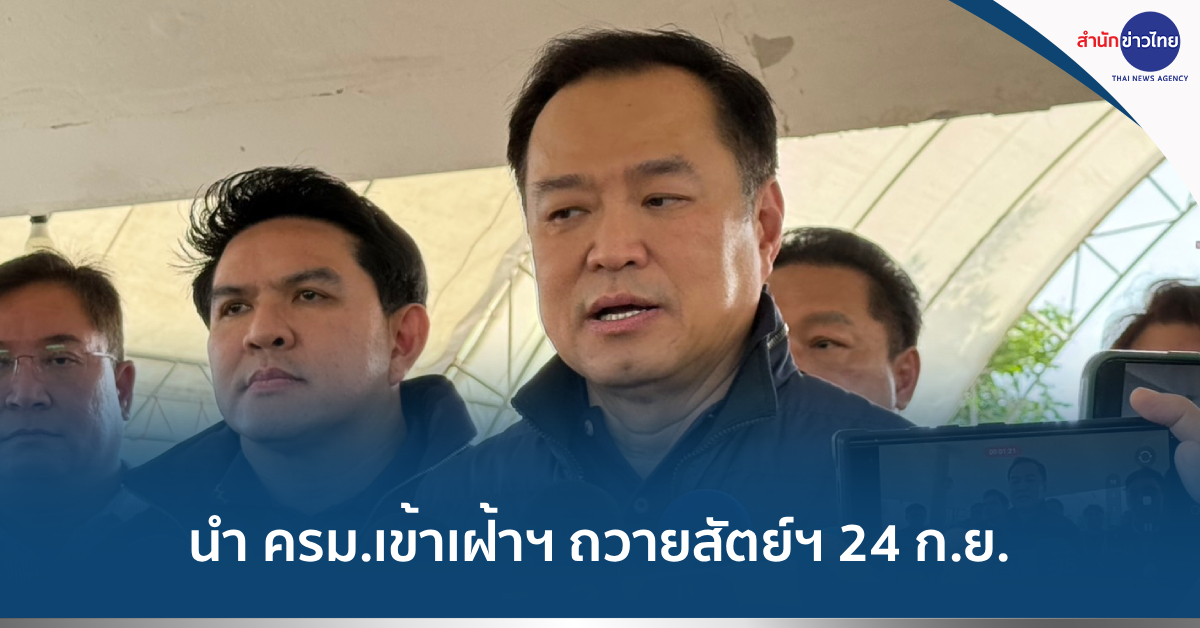 อ่างทอง 20 ก.ย. – “นายกฯ อนุทิน” นำ ครม. เข้าเฝ้าฯ ถวายสัตย์ปฏิญาณ 24 ก.ย.นี้ ก่อนนัดประชุม ครม. แบ่งงานรองนายกฯ-ตั้งเลขาฯ จากนั้นจะนัดประธานรัฐสภา แถลงนโยบายให้เร็วที่สุด