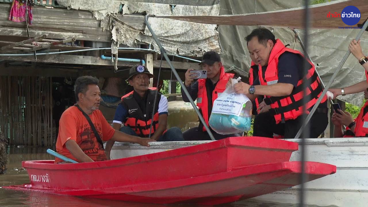 อ่างทอง 20 ก.ย. – “นายกฯ อนุทิน” ลงเรือตรวจน้ำท่วม อ.วิเศษชัยชาญ จ.อ่างทอง เผยสถานการณ์น้ำปีนี้ดีกว่าปีก่อน รับมือตั้งแต่เป็น มท.1 แม้หายไป 2 เดือน มอบถุงยังชีพผู้ประสบอุทกภัยสองฝั่งคลอง เหมาผักบุ้งไปกินกับลาบยกลำ พร้อมซื้อปลาตะเพียนหางแดง ปล่อยกลางแม่น้ำ มีเขินถูกแซวตัวจริงหล่อกว่าในทีวี ปลื้มกระแสคนละครึ่งรีเทิร์น ใจป้ำสแกนจ่ายเอง 2,000 บาท เลี้ยงน้ำชงชาวบ้าน