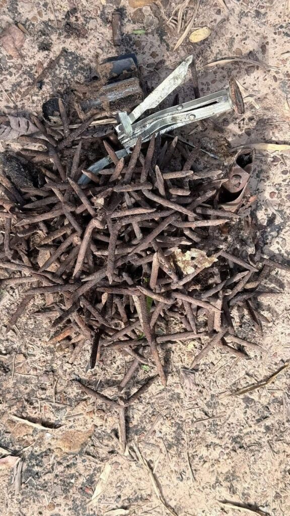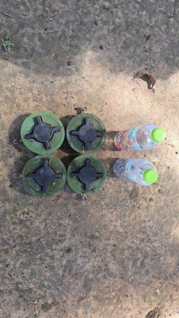 จากการตรวจสอบพื้นที่พบวัตถุระเบิดและวัตถุอันตราย ได้แก่ กระสุนขนาด 40 มม. จำนวน 1 นัด ทุ่นระเบิด PMN-2 จำนวน 4 ทุ่น และเศษโลหะและสิ่งกีดขวางประเภท ขวาก/ล้มลุก จำนวนมาก -สำนักข่าวไทย
