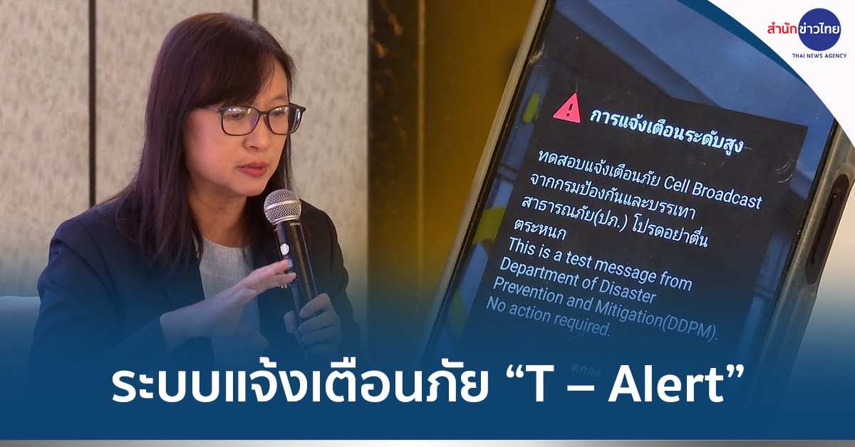 22 ก.ย.- ปภ.ระดมประชาสัมพันธ์ระบบการแจ้งเตือนภัยของประเทศไทย “T – Alert” ที่จะเป็นการแจ้งเตือนภัยในทุกรูปแบบที่ดำเนินการโดยภาครัฐ ผ่านอุปกรณ์เตือนภัยทุกระบบในพื้นที่เสี่ยง