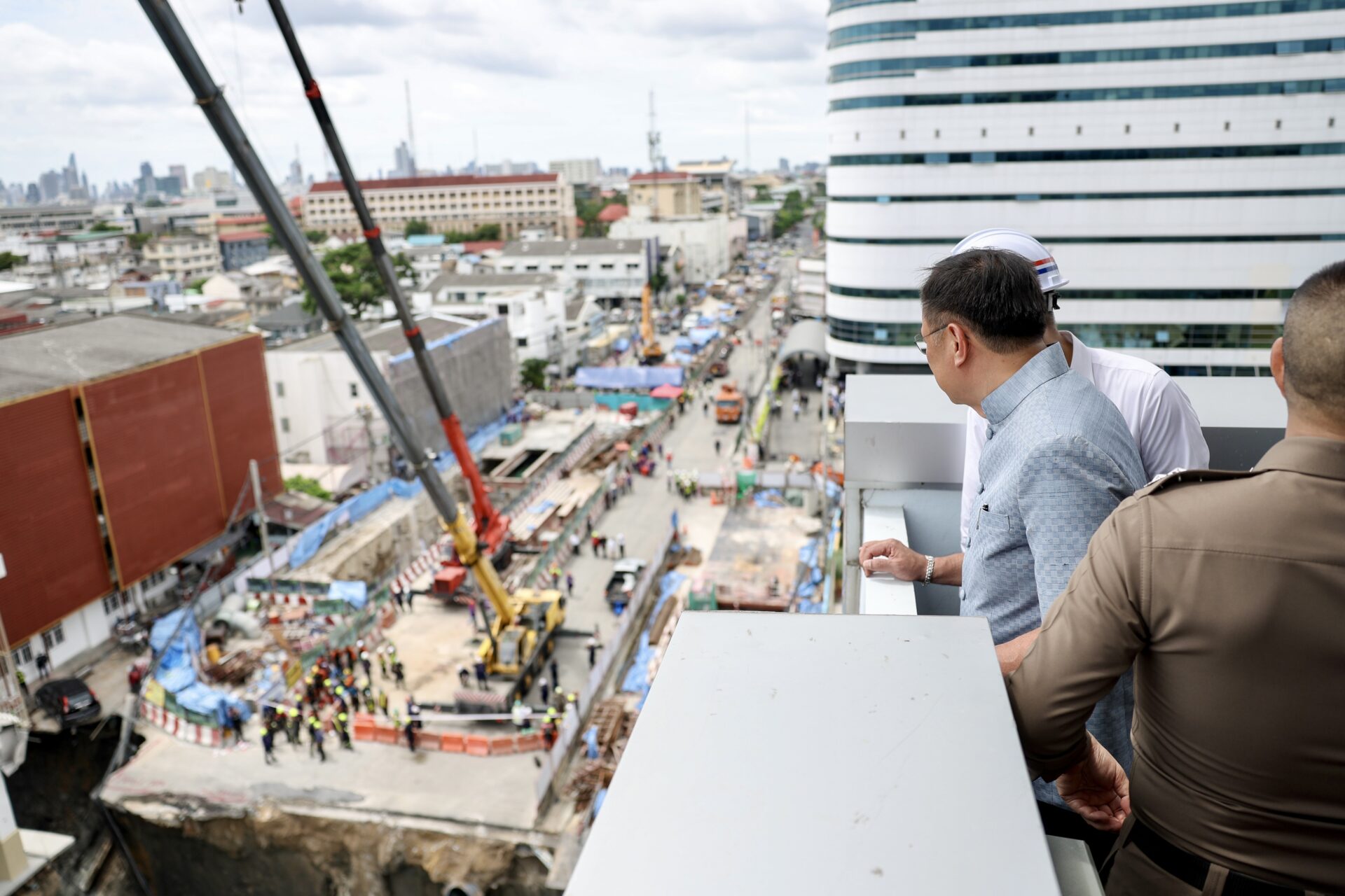 ด้านนายชัชชาติ สิทธิพันธุ์ ผู้ว่าราชการกรุงเทพมหานคร ระบุว่า เราได้สั่งการไปแล้วทั้งการ ตัดน้ำ ตัดไฟ และ รฟม. ให้อุดอุโมงค์ป้องกันดินสไลด์ มีสั่งการประเมินอาคารโดยรอบ โรงพยาบาลไม่น่ากังวล เพราะเป็นอาคารสูงมีกำแพงดิน ส่วนรอบข้างตึกแถวยังน่ากังวล ป้องกันรัศมี 100 เมตร และที่ต้องเฝ้าระวังต่อคือฝนอาจชะดิน สไลด์เพิ่มมากขึ้น ให้สำนักระบายน้ำ เตรียมเครื่องดูดน้ำไว้ รฟม. ต้องดำเนินการอุดตัวอุโมงค์