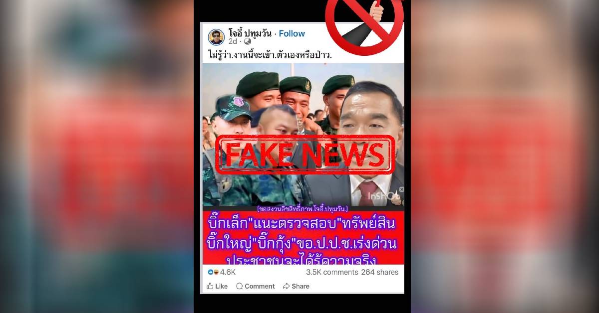 เมื่อวันที่ 24 ก.ย.68 พล.ท.บุญสิน พาดกลาง แม่ทัพภาคที่ 2 เปิดเผยว่า ตามที่มีการเผยแพร่ข้อความบิดเบือนผ่านสังคมออนไลน์ว่า “บิ๊กเล็ก” แนะตรวจสอบทรัพย์สิน “บิ๊กกุ้ง” ขอ ป.ป.ช.เร่งด่วน ประชาชนจะได้รู้ความจริง โดยเพจของ โจอี้ ปทุมวัน ว่า เรื่องดังกล่าวไม่เป็นความจริง เป็นเฟคนิวส์ เพื่อเป็นการสร้างความแตกแยกระดับนโยบายและระดับปฏิบัติ