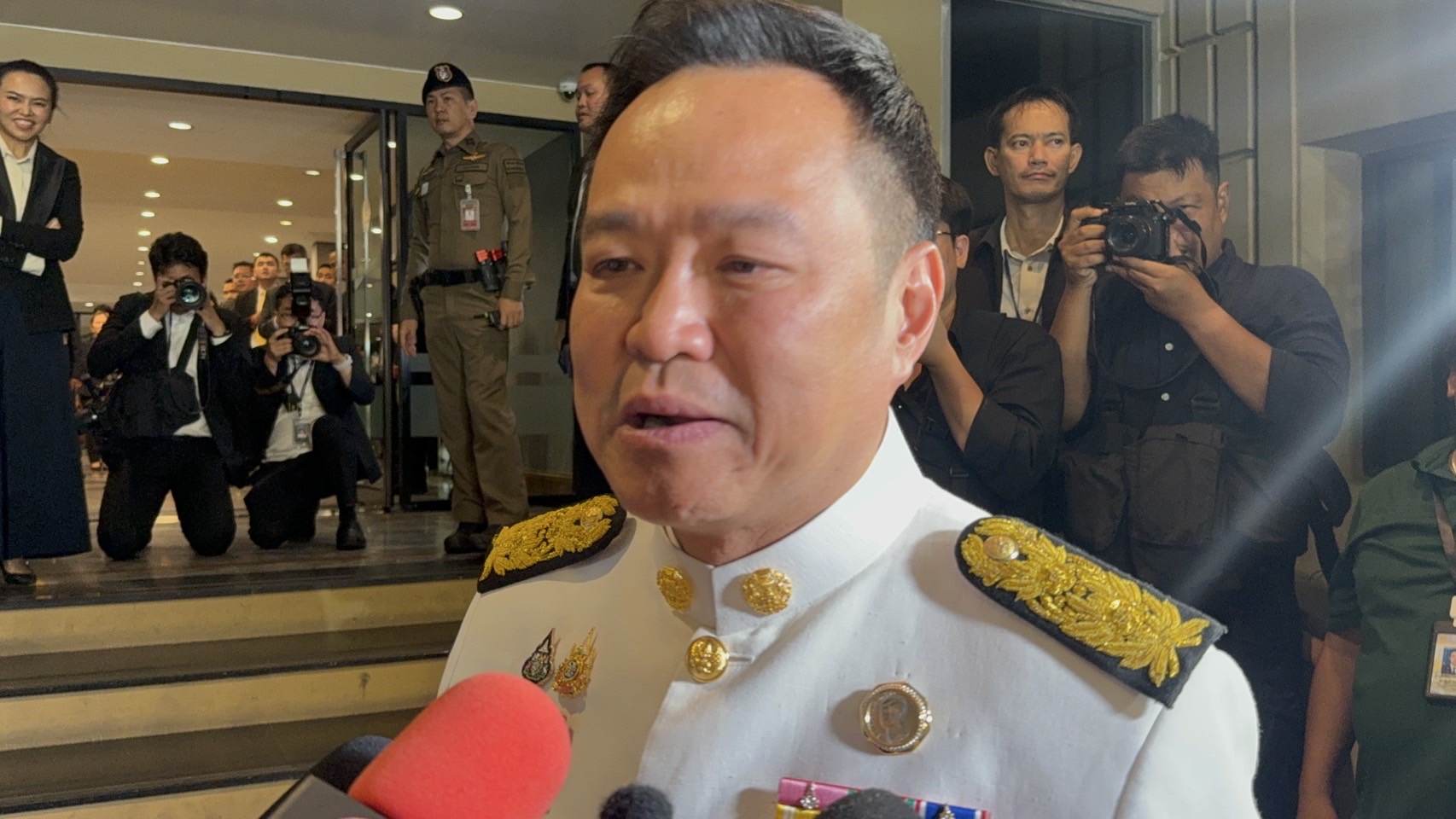 ผู้สื่อข่าวกระเซ้านายกฯ ว่า ซาบซึ้งจนน้ำตาคลอ นายอนุทิน ยิ้ม และพยักหน้ารับ ก่อนย้ำว่า เป็นพระมหากรุณาธิคุณที่สามัญชนอย่างตนพึงได้รับ จะไม่มีทางทำอะไรนอกจากทำคุณงามความดีให้กับประเทศและประชาชน ตามพระราชดำรัสที่ได้รับสั่งไว้