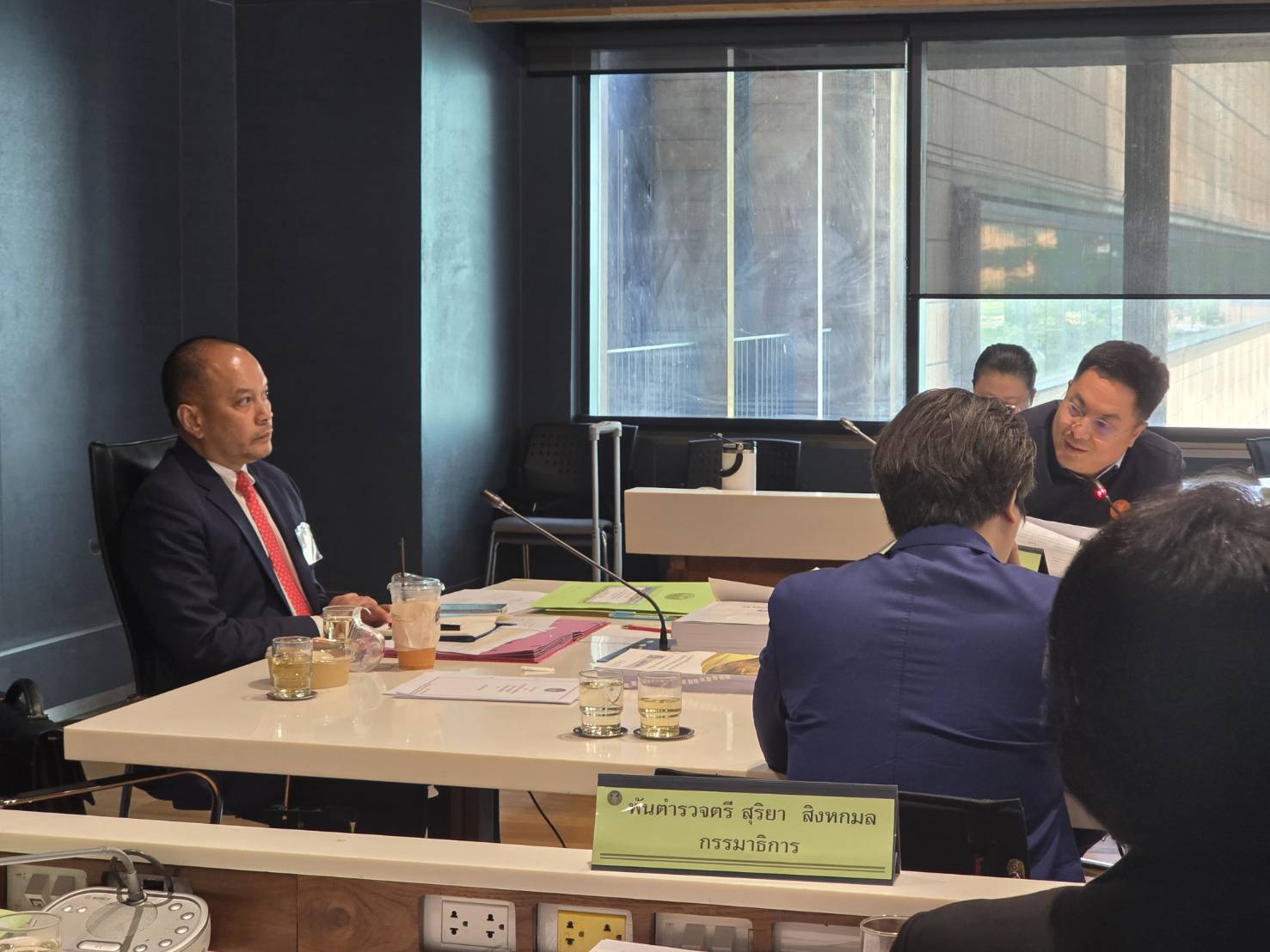 นายณัฐวุฒิ ใสยเกื้อ ประธานคณะกรรมาธิการวิสามัญพิจารณาร่างพระราชบัญญัติสร้างเสริมสังคมสันติสุข พร้อมด้วย นายวีรภัทร ปริยวงศ์, นายเอกชัย ไชยนุวัฒน์ โฆษกคณะกรรมาธิการ และนายนิกร จำนง กรรมาธิการ แถลงสรุป ข้อมูลการศึกษาของคณะกรรมาธิการ ซึ่งในวันนี้ถือว่าเป็นนัดสุดท้ายของการประชุม