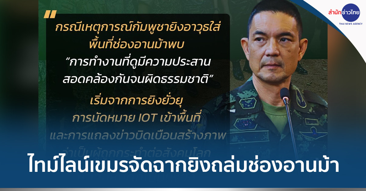 28 ก.ย.- กองทัพบก ชี้ กัมพูชาจัดฉาก ปมเหตุการณ์กัมพูชายิงอาวุธหลายขนาดใส่พื้นที่ช่องอานม้า เป็นการวางแผนล่วงหน้า ทั้งการยั่วยุด้วยอาวุธ การนัดหมายคณะ IOT เข้าพื้นที่ และการแถลงบิดเบือนกล่าวหาไทย ทั้งหมดเป็นเพียง “การสร้างสถานการณ์” ของฝ่ายกัมพูชา เมื่อวานนี้