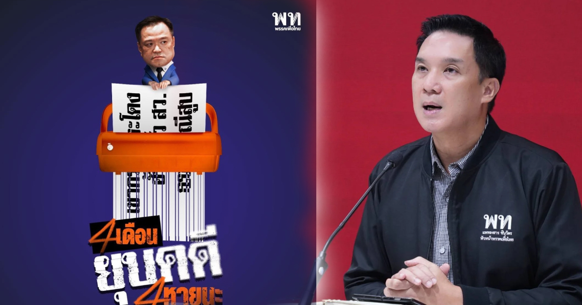กรุงเทพฯ 28 ก.ย.- “เพื่อไทย” เปิดแคมเปญ 4 เดือนยุบคดี 4 หายนะ ชำแหละนโยบายรัฐบาล ซัดขาดคนมีฝีมือนอมินีบุรีรัมย์-รัฐมนตรีปราสาทสายฟ้าคอนเนกชัน หวั่นคดีฮั้ว สว.-เขากระโดง อาจถูกปิดทับด้วยฟิล์มดำสนิท ยันจะใช้เวลา 6 ชั่วโมง อย่างคุ้มค่า ไม่มีออมมือ