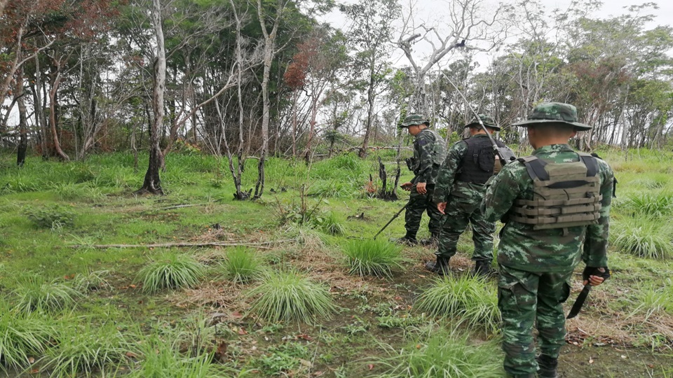 จ.อุบลราชธานี 22 มิย.-ชุดปฏิบัติการรวงผึ้งหน่วยปฏิบัติการทุ่นระเบิดด้านมนุษยธรรมที่ 3 กองทัพไทยบูรณาการงานร่วมหลายหน่วยงานเร่งสำรวจพื้นที่ต.โดมประดิษฐ์ อ.น้ำยืน จ.อุบลราชธานี ค้นหาทุ่นระเบิดตั้งแต่ปี 28 ก่อนคืนพื้นที่ให้ประชาชนใช้ชีวิติอย่างปลอดภัย ยั่งยืน