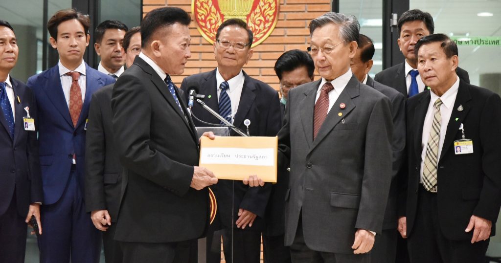 รัฐสภา 10 ก.ย.- 6 พรรคร่วมฝ่ายค้านแท็กทีมยื่นญัตติแก้ รธน.อีกฉบับ ปิดสวิตช์ ส.ว. พ่วงยกเลิกคำสั่ง-ประกาศ คสช. ให้กลับมาใช้บัตรเลือกตั้ง 2 ใบ ด้านประธานสภาฯ ยันถ้าร่างถูกต้องครบถ้วน บรรจุทัน 23-24 ก.ย.นี้