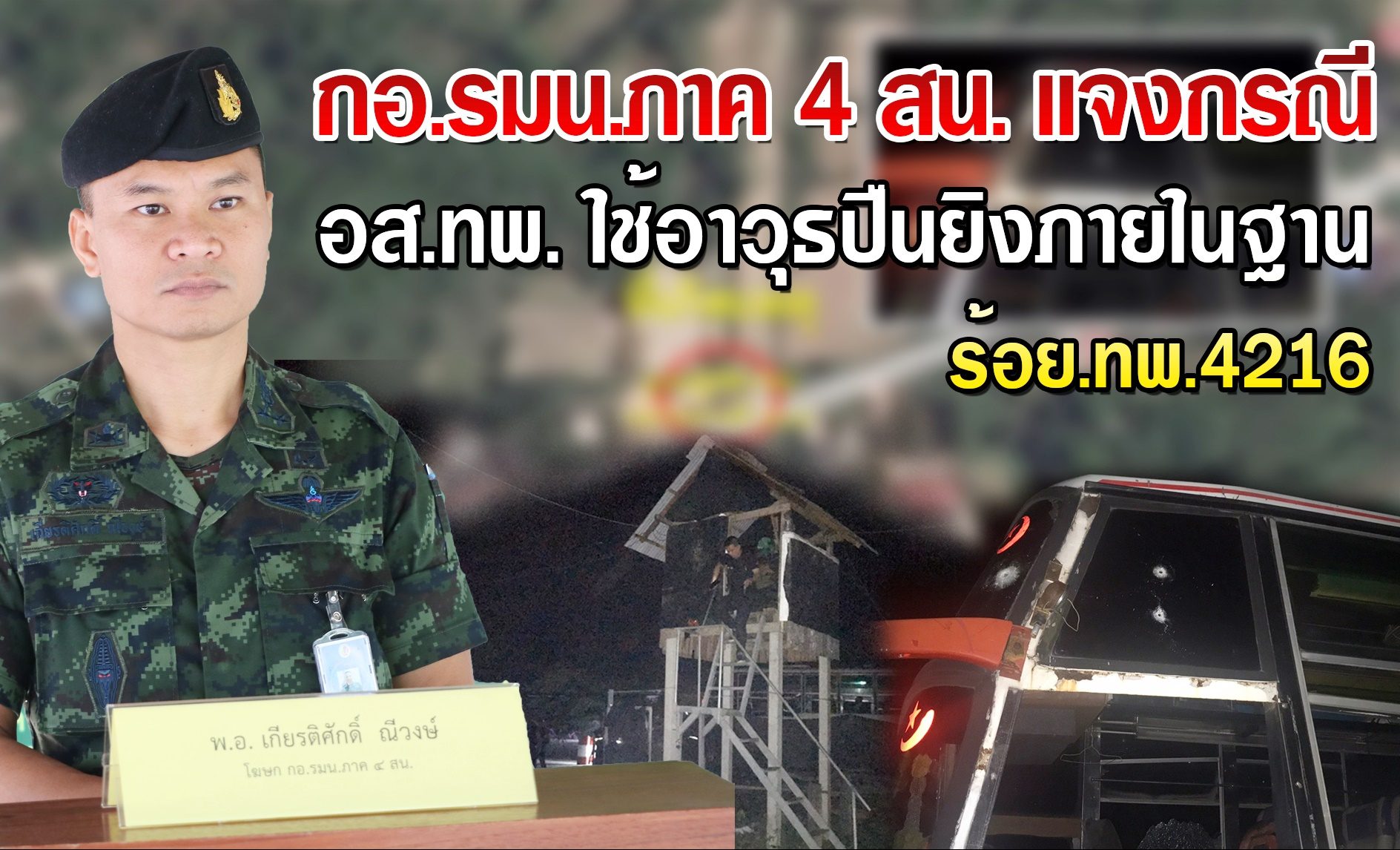 “จากเหตุการณ์ดังกล่าว แม้จะเกิดจากปัญหาส่วนตัว แต่สร้างความเสียหายและส่งผลกระทบต่อความรู้สึกและความเชื่อมั่นของพี่น้องประชาชน และอาจเป็นเงื่อนไขให้กลุ่มที่ไม่หวังดีนำไปบิดเบือนโจมตี เพื่อสร้างความเกลียดชังดังที่ปรากฏให้เห็นอย่างกว้างขวางในห้วงที่ผ่านมา กอ.รมน.ภาค 4 ส่วนหน้าขอแสดงความเสียใจต่อเหตุการณ์ที่เกิดขึ้น และขอยืนยันว่าจะให้ความเป็นธรรม และไม่ปกป้องกำลังพลที่กระทำผิดเด็ดขาด โดยจะลงโทษวินัยขั้นสูงสุด และหากพบมีความผิดทางอาญาจะให้เจ้าหน้าที่ตำรวจดำเนินคดีตามกฎหมายต่อไป” โฆษกกอ.รมน.ภาค 4 สน.กล่าว