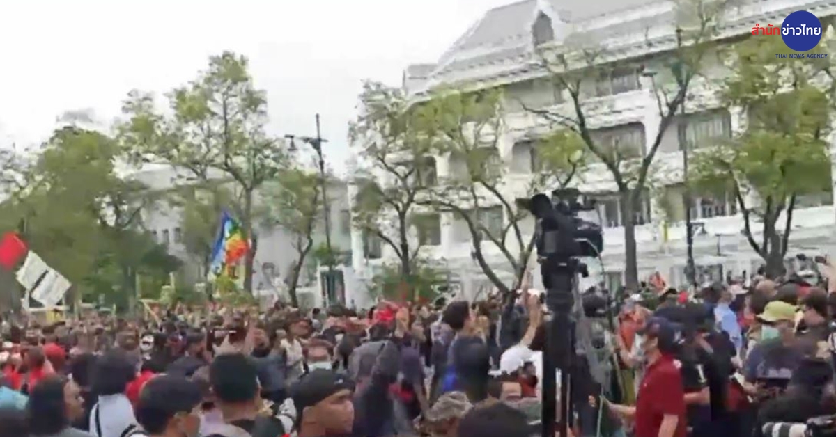 ความคืบหน้าการชุมนุมของกลุ่มแนวร่วมธรรมศาสตร์และการชุมนุม ที่บริเวณท้องสนามหลวง เมื่อช่วงเช้าวันนี้ (20 ก.ย.) แกนนำผู้ชุมนุม นำโดย นายพริษฐ์ ชิวารักษ์ หรือ “เพนกวิน” และนายอานนท์ นำภา นำมวลชนขึ้นเวทีปราศรัยเคลื่อนที่ 3 คัน ออกจากท้องสนามหลวง เพื่อไปยื่นหนังสือเรียกร้องที่ทำเนียบองคมนตรี โดยออกจากท้องสนามหลวง และเลี้ยวขวามาตาม ถ.ราชดำเนินใน ด้านหน้าศาลฎีกา ก่อนพบกับตำรวจควบคุมฝูงชนจากสมุทรสงคราม ที่นำรั้วเหล็กมาตั้งแถวสกัดกั้นบริเวณประตูด้านหน้าศาลฎีกาเป็นด่านแรก พร้อมกับห้ามผู้ชุมนุมและสื่อมวลชนผ่านเข้า-ออก โดยกำลังตำรวจตั้งขบวนสกัดเป็น 2 ชั้น และยังมีการนำรถเมล์มาจอดขวางอีก 1 ชั้น