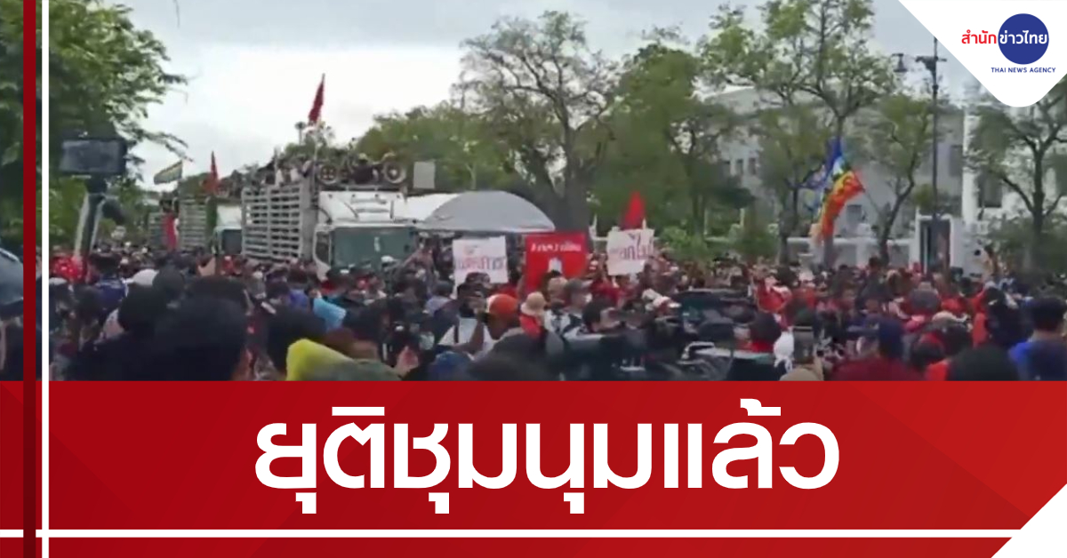 ล่าสุดเมื่อเวลา 09.30 น. มีการประกาศยุติการชุมนุมแล้ว พร้อมกับนัดหมายกันชุมนุมใหญ่อีกครั้งในวันที่ 14 ตุลาคม 2563 ขณะเดียวกัน จะมีการนัดชุมนุมที่รัฐสภา ในวันที่ 23-24 กันยายนนี้ ซึ่งเป็นวันที่จะมีการพิจารณาร่าง พ.ร.บ.งบประมาณรายจ่ายประจำปีงบประมาณ 2564. – สำนักข่าวไทย