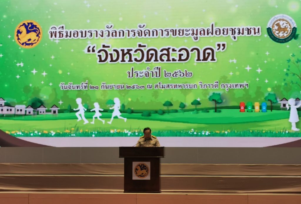 พล.อ.ประวิตร วงษ์สุวรรณ รองนายกรัฐมนตรี ฝ่ายความมั่นคง เป็นประธานพิธีมอบรางวัลการจัดการขยะมูลฝอยชุมชน “จังหวัดสะอาด” ระดับประเทศ ประจำปี 2562 โดยมีนายประยูร รัตนเสนีย์ อธิบดีกรมส่งเสริมการปกครองท้องถิ่น ผู้บริหารระดับสูงของกระทรวงมหาดไทย ผู้ว่าราชการจังหวัด ผู้แทนส่วนราชการ หน่วยงานภาครัฐ และภาคเอกชน และผู้บริหารองค์กรปกครองส่วนท้องถิ่น เข้าร่วมพิธี ที่สโมสรทหารบก ถนนวิภาวดีรังสิต กรุงเทพฯ