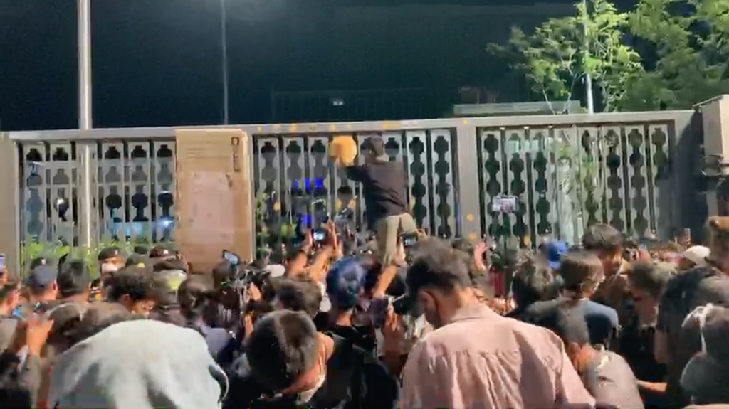 ขณะที่แกนนำคนอื่นต่างเรียกร้องให้ ส.ว.ออกมารับฟังข้อเรียกร้องจากมวลชนด้านหน้ารัฐสภา พร้อมนำมวลชนติดสติ๊กเกอร์หมุดคณะราษฎร 2563 ที่ประตูและพื้นที่เข้าออกรัฐสภา