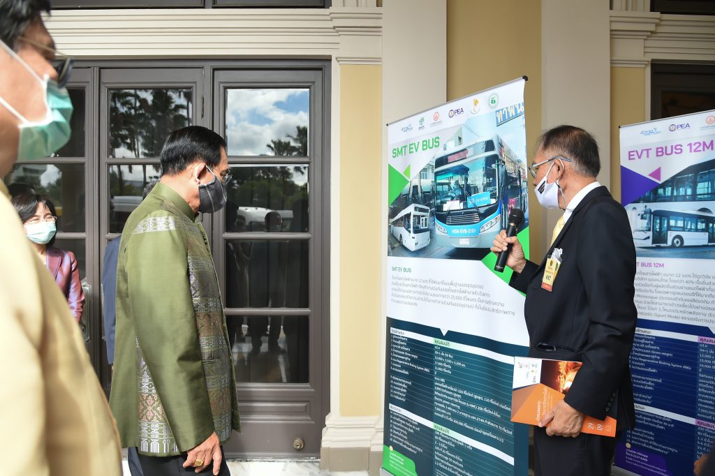 ก่อนการประชุมคณะรัฐมนตรี พล.อ.ประยุทธ์ จันทร์โอชา นายกรัฐมนตรีและคณะรัฐมนตรี เยี่ยมชมผลงานวิจัยการพัฒนาต้นแบบรถโดยสารไฟฟ้า โครงการพัฒนารถโดยสารไฟฟ้าจากรถโดยสารประจำทางใช้แล้วของขสมก. (City transit E-buses) ซึ่งเป็นผลงานวิจัยและพัฒนาของกระทรวงการอุดมศึกษา วิทยาศาสตร์ วิจัยและนวัตกรรม (อว.) โดยสำนักงานพัฒนาวิทยาศาสตร์และเทคโนโลยีแห่งชาติ (สวทช.) ร่วมกับเครือข่ายพันธมิตร ภายใต้บันทึกข้อตกลงความร่วมมือด้านการวิจัยและพัฒนาโครงการพัฒนารถโดยสารไฟฟ้าจากรถโดยสารประจำทางใช้แล้วขององค์การขนส่งมวลชนกรุงเทพ (ขสมก.) เพื่อพัฒนาขีดความสามารถของผู้ประกอบการไทยในการออกแบบและผลิตรถโดยสารไฟฟ้า ที่สามารถจดทะเบียนเพื่อใช้งานกับกรมการขนส่งทางบก ได้อย่างถูกต้อง และพร้อมสำหรับการผลิตในระดับอุตสาหกรรม ทั้งนี้ ได้พัฒนาตู้อัดประจุไฟฟ้าจำนวน 2 ตู้ติดตั้งที่เขตการเดินรถที่ 1 ของขสมก. เพื่อให้รถสามารถทดลองวิ่งเป็นรถโดยสารประจำทางสาย 543ก (อู่บางเขน-ท่าน้ำนนท์) เป็นระยะเวลา 6 สัปดาห์