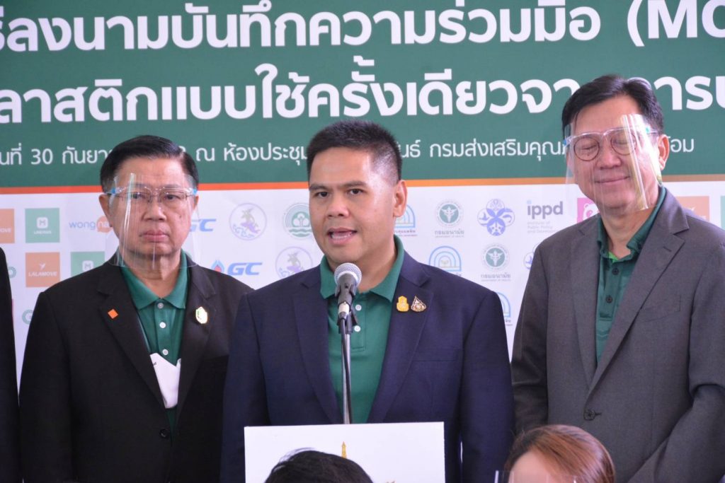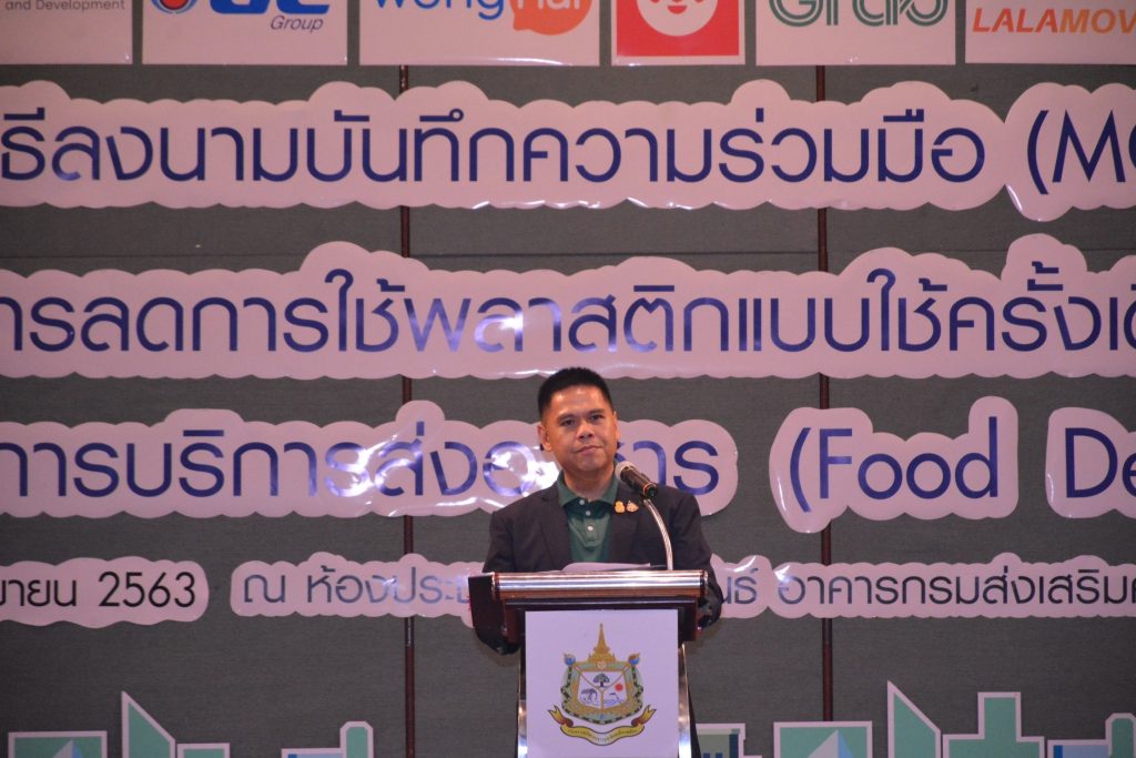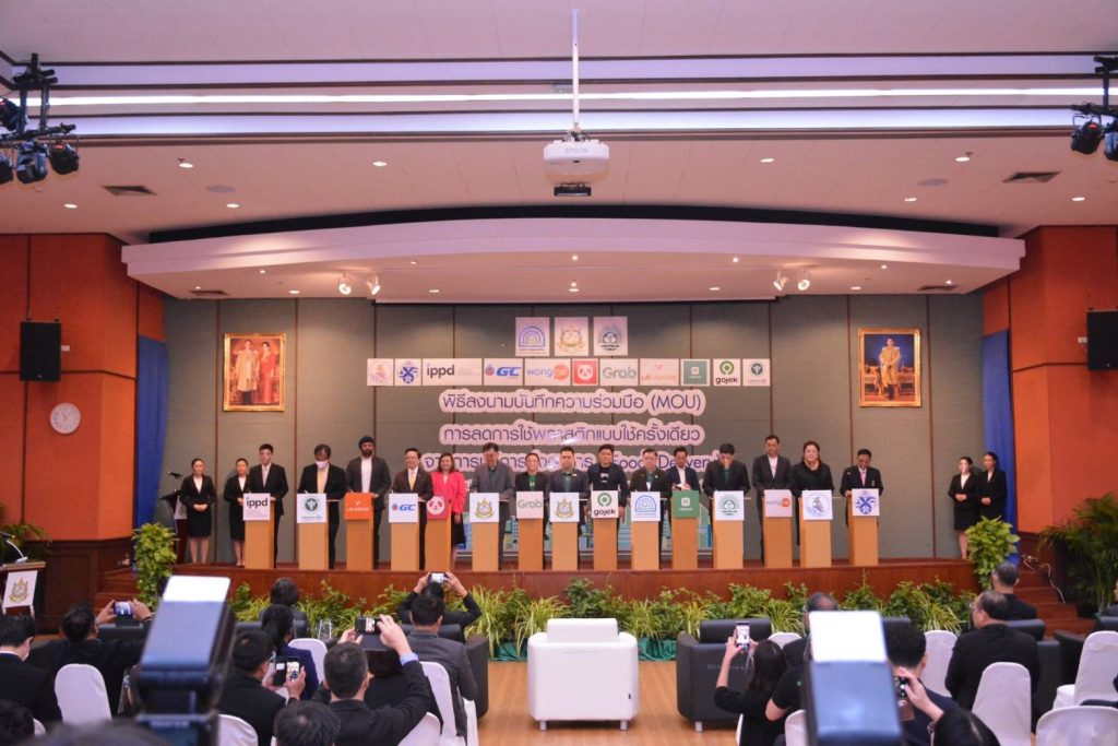 กระทรวงทรัพยากรธรรมชาติและสิ่งแวดล้อม จับมือหน่วยงาน และแพลตฟอร์มบริการ Food Delivery ร่วม 13 หน่วยงาน ลงนามบันทึกความร่วมมือการลดการใช้พลาสติกแบบใช้ครั้งเดียว จากการบริการส่งอาหาร ณ ห้องประชุมอารีย์สัมพันธ์ อาคารกรมส่งเสริมคุณภาพสิ่งแวดล้อม แสดงเจตนารมณ์ที่ร่วมขับเคลื่อนการดำเนินงาน ภายใต้แนวคิด “Food Delivery วิถีใหม่ ใส่ใจสิ่งแวดล้อม” ผลักดันให้ทุกหน่วยงาน ลด เลิกใช้พลาสติกแบบใช้ครั้งเดียว ในบริการส่งอาหาร โดยใช้ผลิตภัณฑ์ที่เป็นมิตรกับสิ่งแวดล้อมทดแทน