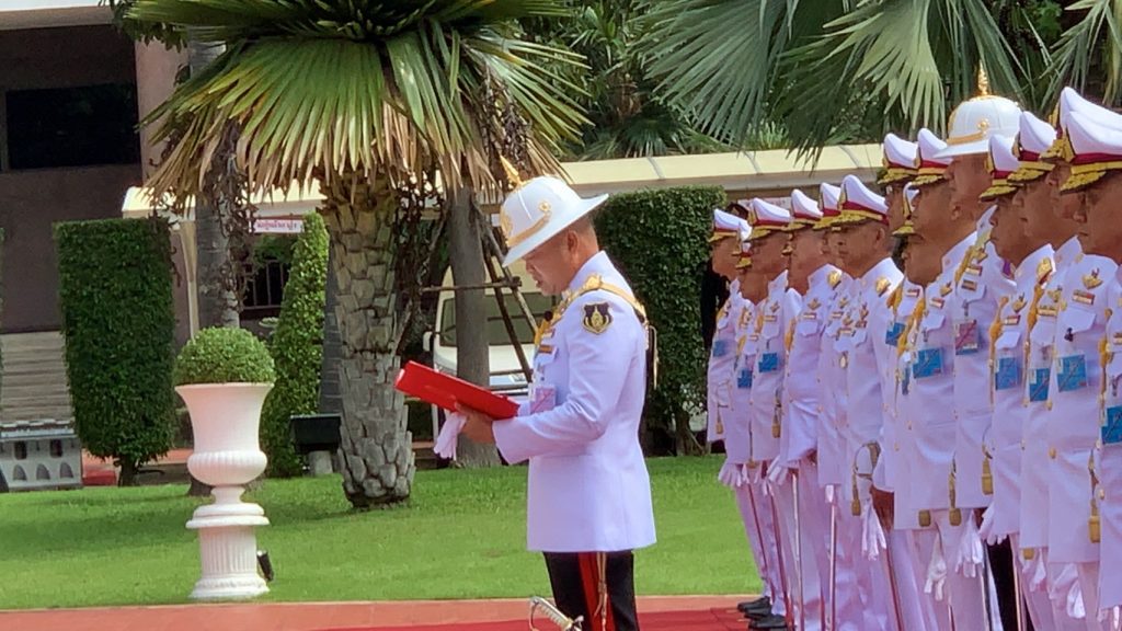 ผู้บัญชาการทหารบก นำกล่าวคาถามหาจักรี และนำปฎิญานตนว่า ข้าพระพุทธเจ้าจะรักษาไว้ ซึ่งพระบรมเดชานุภาพ แห่งพระมหากษัตริย์เจ้า และจะธำรงไว้ ซึ่งเกียรติยศและศักดิ์ศรีของทหาร และข้าพระพุทธเจ้าจักรักษามรดกของพระองค์ท่าน ไว้ด้วยชีวิต ต่อหน้าพระบรมราชานุเสาวรีย์รัชกาลที่5 องค์พระบิดาของโรงเรียนนายร้อยพระจุลจอมเกล้าแห่งนี้ พร้อมสักการะเพื่อความเป็นสิริมงคล.-สำนักข่าวไทย