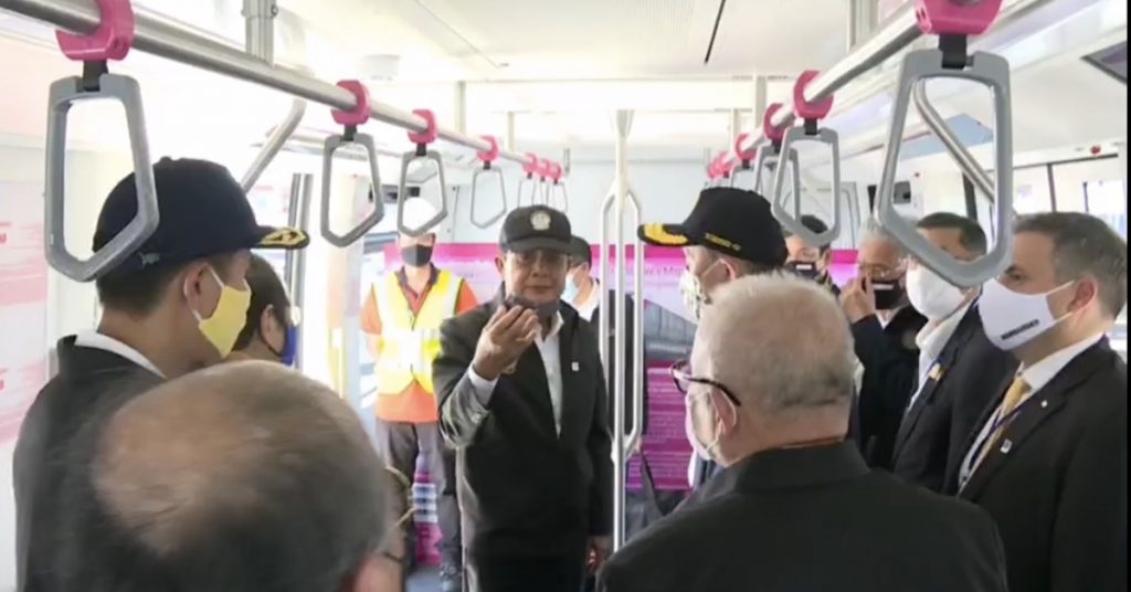 จากนั้น นายกรัฐมนตรี ทำการตัดริบบิ้นรับรถไฟฟ้าโมโนเรล และเยี่ยมชมภายในขบวนรถไฟฟ้าโมโนเรลทั้ง 2 สาย