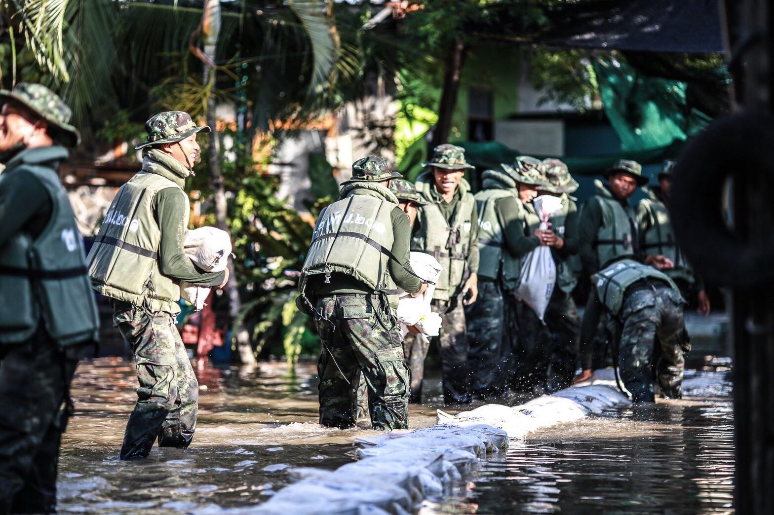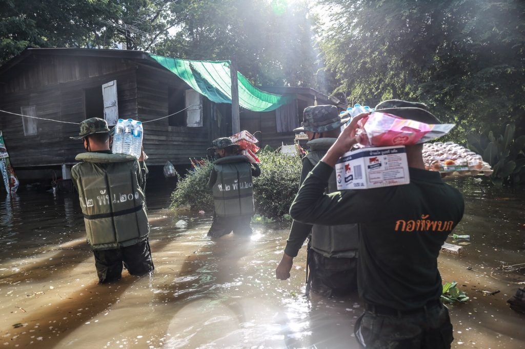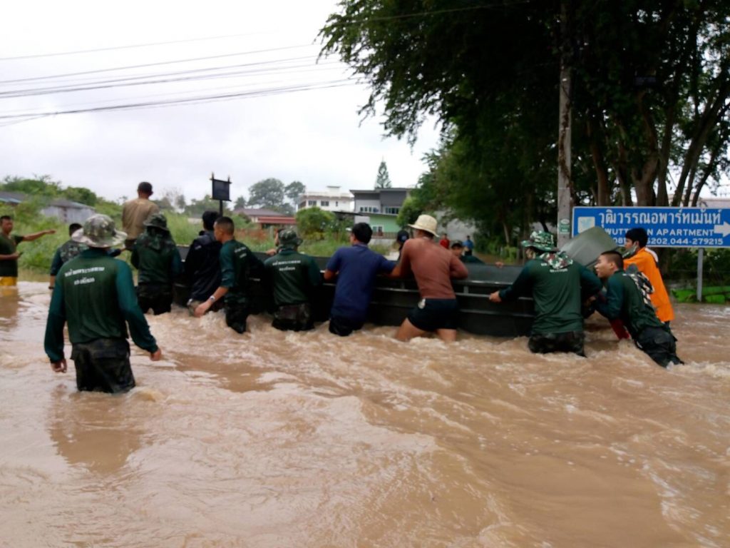 สำหรับการดำเนินงานนั้น หน่วยทหารในพื้นที่ ได้จัดแบ่งกำลังชุดปฏิบัติการ ลงพื้นที่ดูแลอำนวยความสะดวก บรรจุกระสอบทรายทำแนวกั้นน้ำ ป้องกันน้ำเข้าท่วมบ้านเรือนประชาชน, เก็บขยะขวางทางน้ำ ระบายเส้นทางการจราจร, นำเรือท้องแบนเข้าช่วยอพยพผู้ป่วยติดเตียง ผู้สูงอายุ และประชาชนเข้าสู่พื้นที่ที่ปลอดภัย, ขนย้ายสิ่งของขึ้นสู่ที่สูง และมอบสิ่งของอุปโภคบริโภค