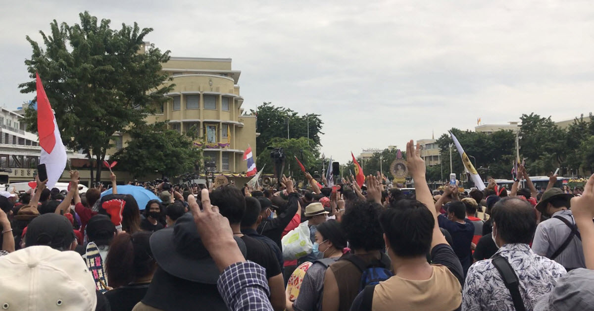 อนุสาวรีย์ประชาธิปไตย 14 ต.ค.- แกนนำกลุ่มคณะราษฎร 63 ขอผู้ชุมนุมรวมตัวบริเวณหน้าโรงเรียนสตรีวิทยา เปิดเส้นทางจราจร และอยู่ในความสงบ ลดการปะทะ