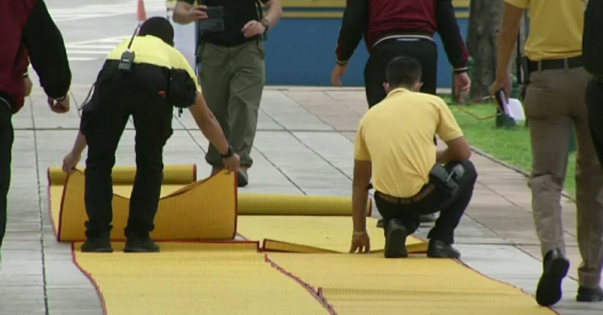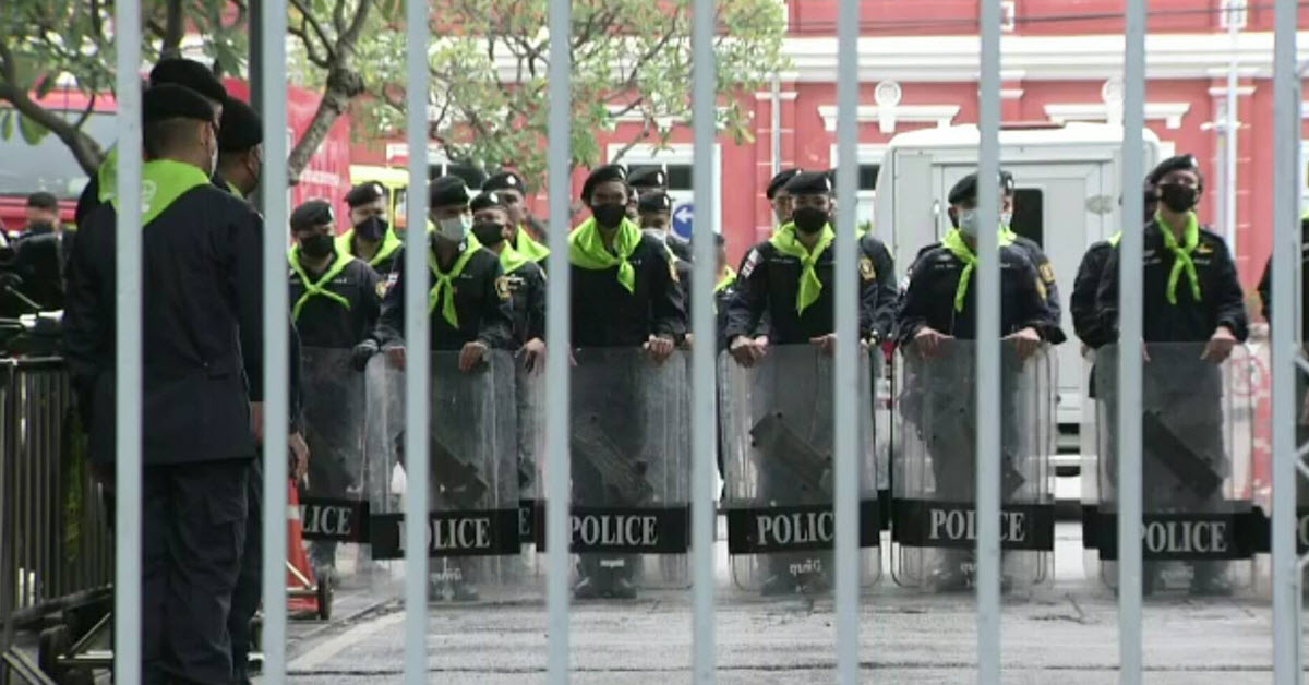 ขณะที่ทางเข้าทำเนียบรัฐบาล ฝั่งประตู 5 ถนนราชดำเนินนอก มีเจ้าหน้าที่ตำรวจควบคุมฝูงชนประจำการอยู่ เพื่อดูแลความเรียบร้อย