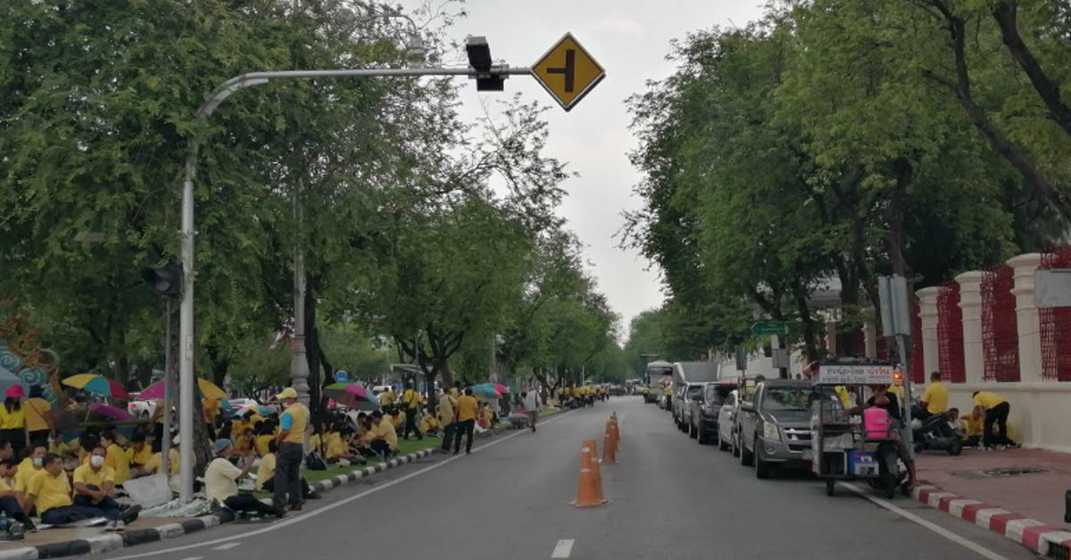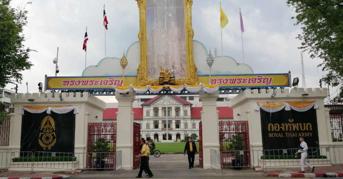 สำหรับบรรยากาศด้านหน้ากองบัญชาการกองทัพบก บรรยากาศเป็นไปด้วยความเรียบร้อย มีเจ้าหน้าสารวัตรทหารและพลทหารที่เข้าเวร ทำหน้าที่รักษาความปลอดภัยอย่างเข้มงวดตลอดทั้งวัน โดยประตูด้านหน้า ถ.ราชดำเนินกลาง ยังเปิดให้ใช้เข้า-ออกได้ตามปกติ เช่นเดียวกับประตูด้านหลังฝั่ง ถ.นครราชสีมา แต่มีการนำแผงเหล็กมากั้น บริเวณป้ายและสัญลักษณ์กองทัพบก ตรงประตูทางเข้า-ออกด้านหน้า รวมถึง นำสแลนสีดำมาบังไว้ เพื่อป้องกันไม่ให้คนไม่หวังดีมาทำกิจกรรมแสดงสัญลักษณ์ด้านหน้าป้ายดังกล่าว