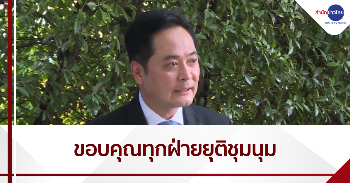 กทม. 17 ต.ค. – โฆษกประจำสำนักนายกรัฐมนตรี เผยนายกรัฐมนตรีขอขอบคุณเจ้าหน้าที่ทุกฝ่าย ประชาชนทุกกลุ่ม และผู้ชุมนุม ที่ให้ความร่วมมือกับเจ้าหน้าที่ของรัฐในการยุติการชุมนุม ย้ำรัฐบาลพร้อมจะทำให้สังคมกลับคืนสู่สภาวะปกติโดยเร็วที่สุด และนำความสงบสุขกลับมาสู่ประเทศ